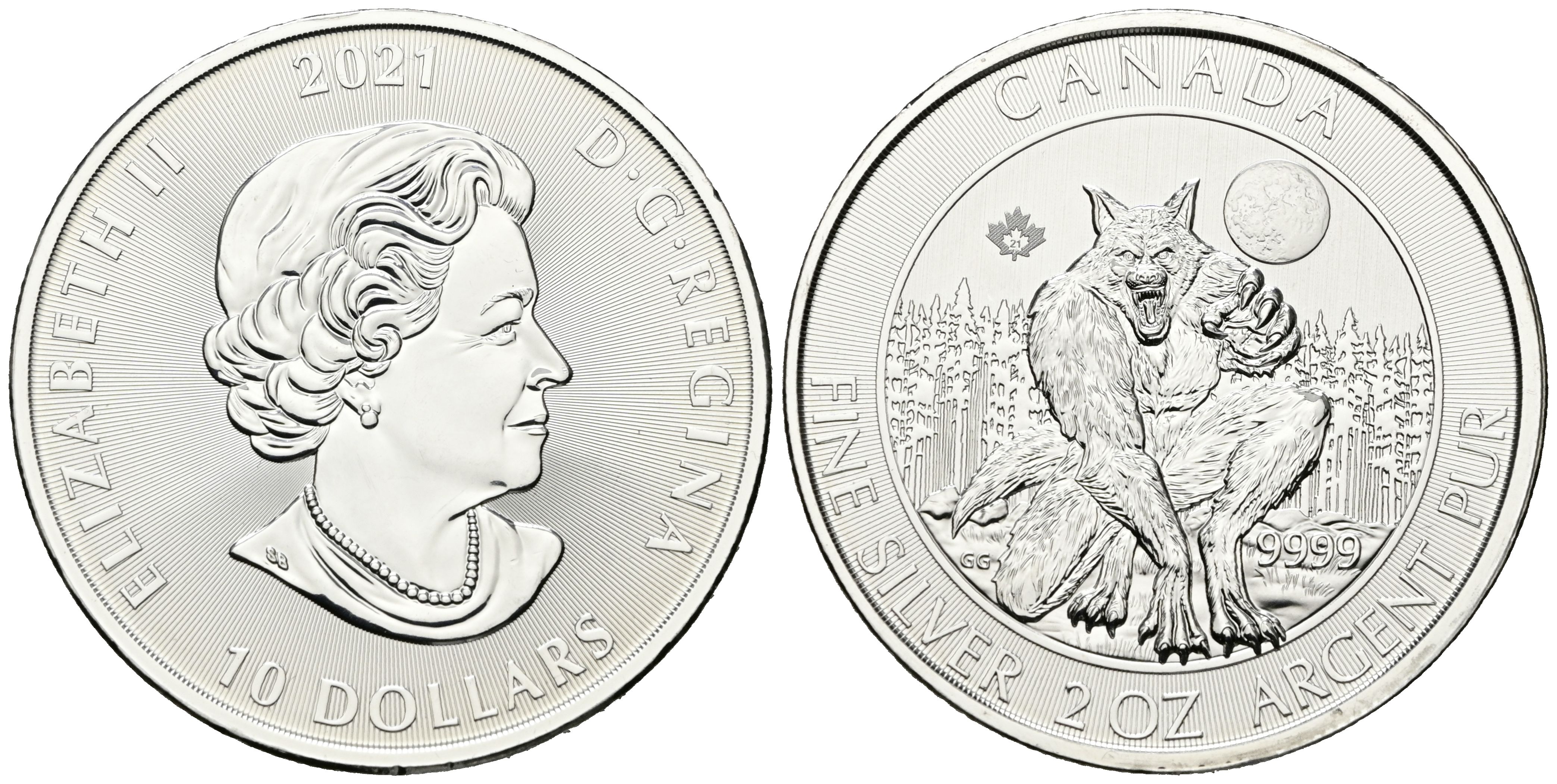 CANADÁ. 10 Dollars (Ar. 62,75g/38mm). 2021. Hombre Lobo. SC. Incluye cápsula.