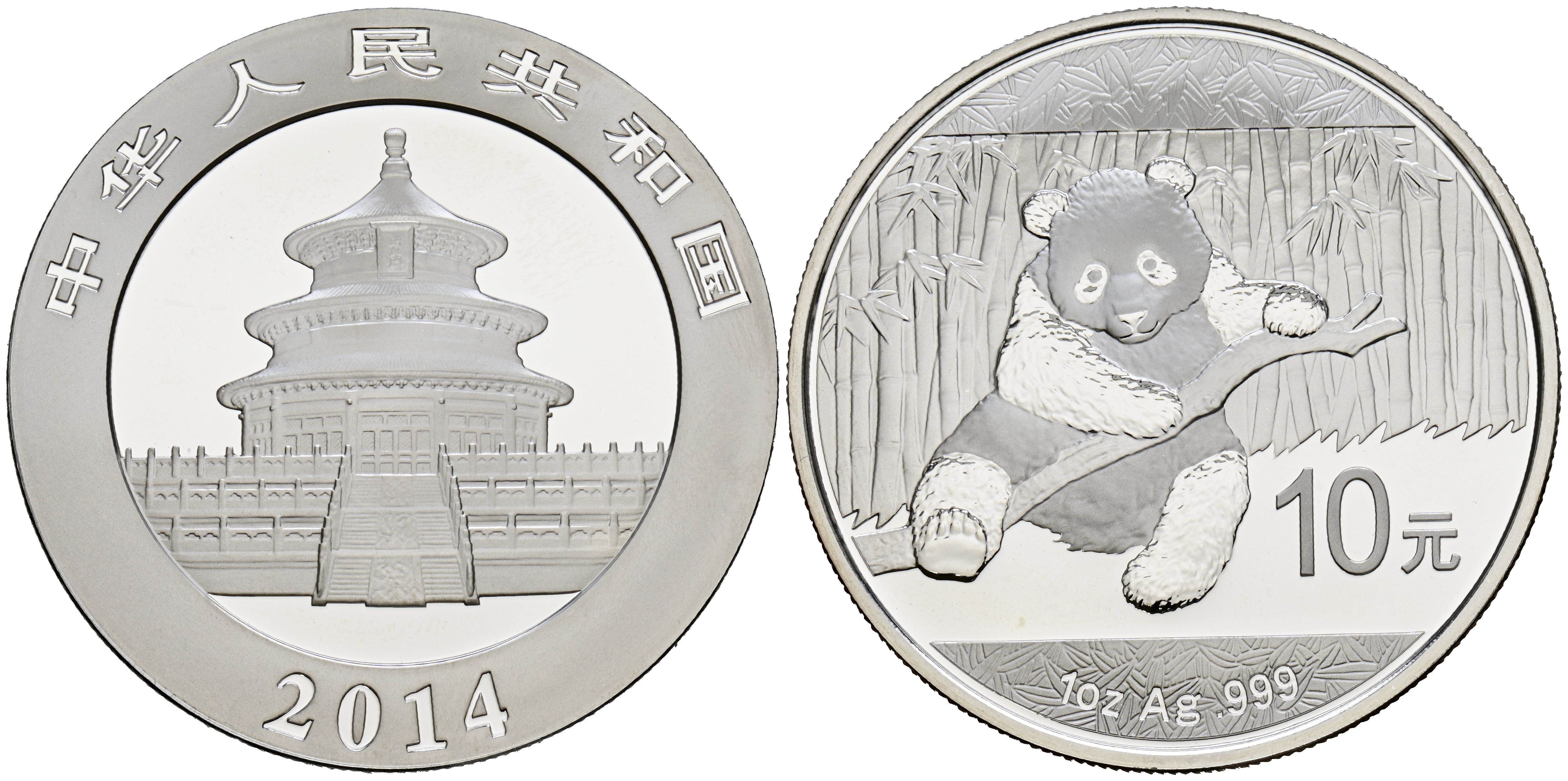CHINA. 10 Yuan (Ar. 31,176g/40mm). 2014. Serie Panda. SC.