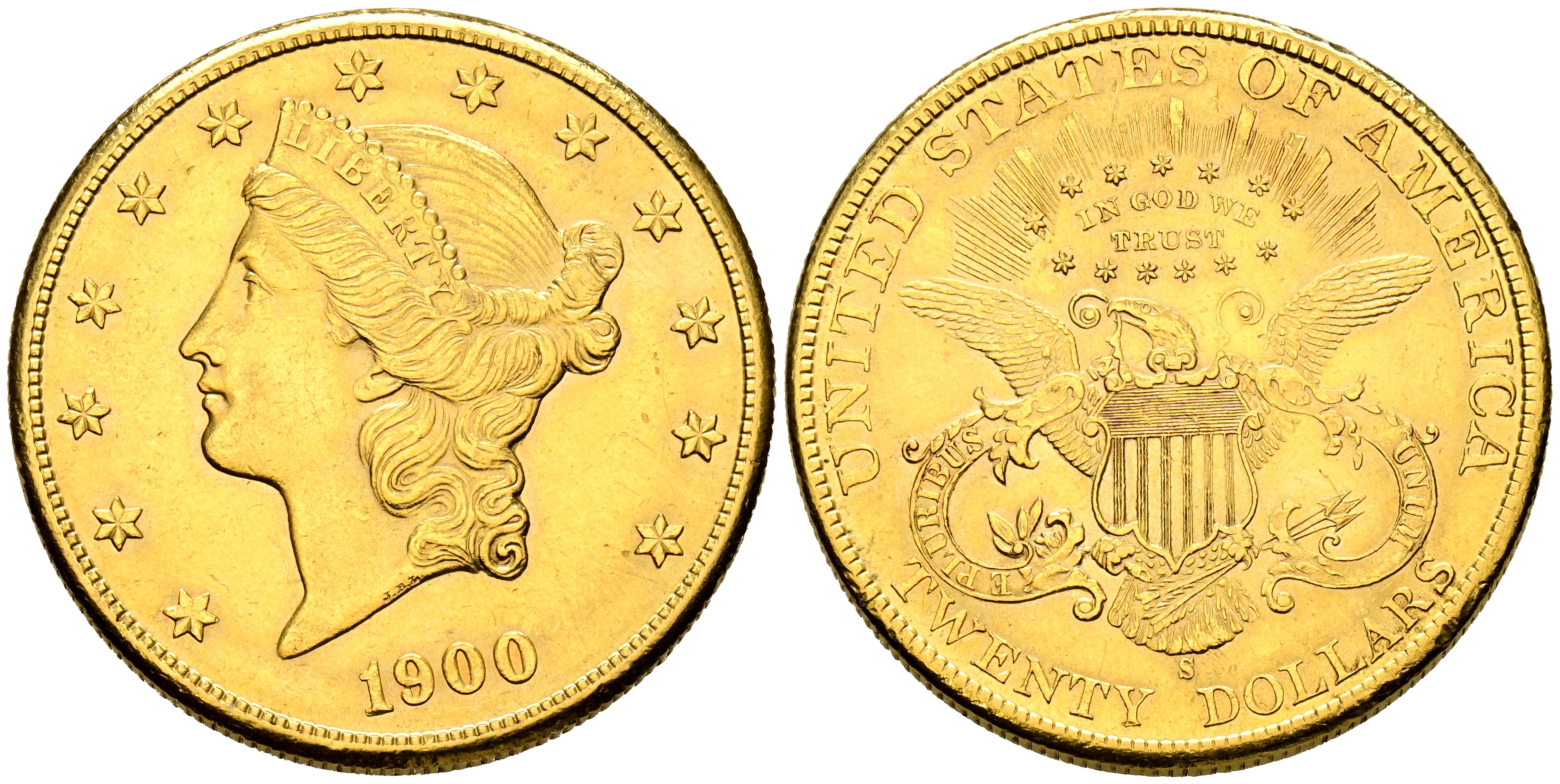 ESTADOS UNIDOS. 20 Dollars. (Au. 33,43g/34mm). 1900. San Francisco S. (Km#74.3). EBC. Precioso ejemplar.