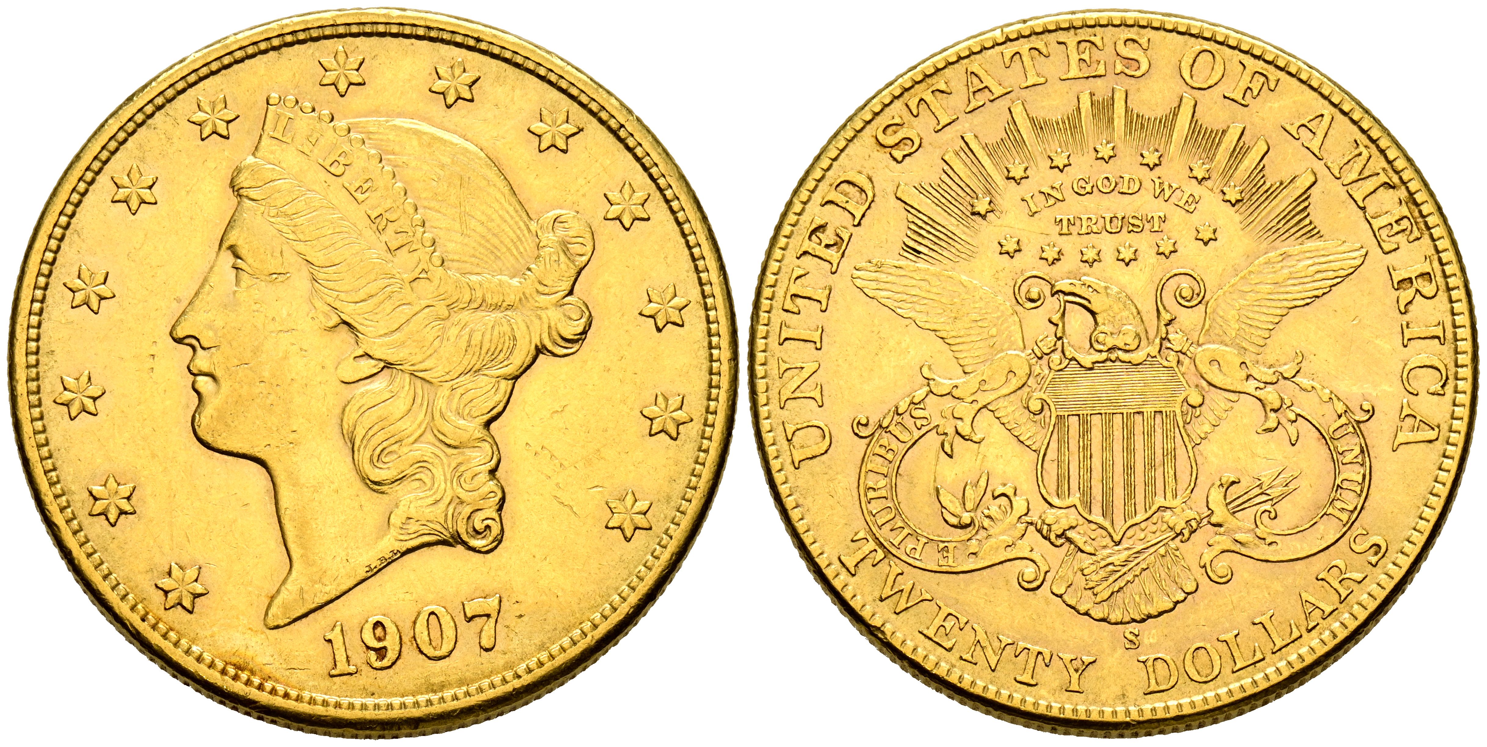 ESTADOS UNIDOS. 20 Dólares. (Au. 33,45g/34mm). 1907. San Francisco. (Km#74.3). MBC+.