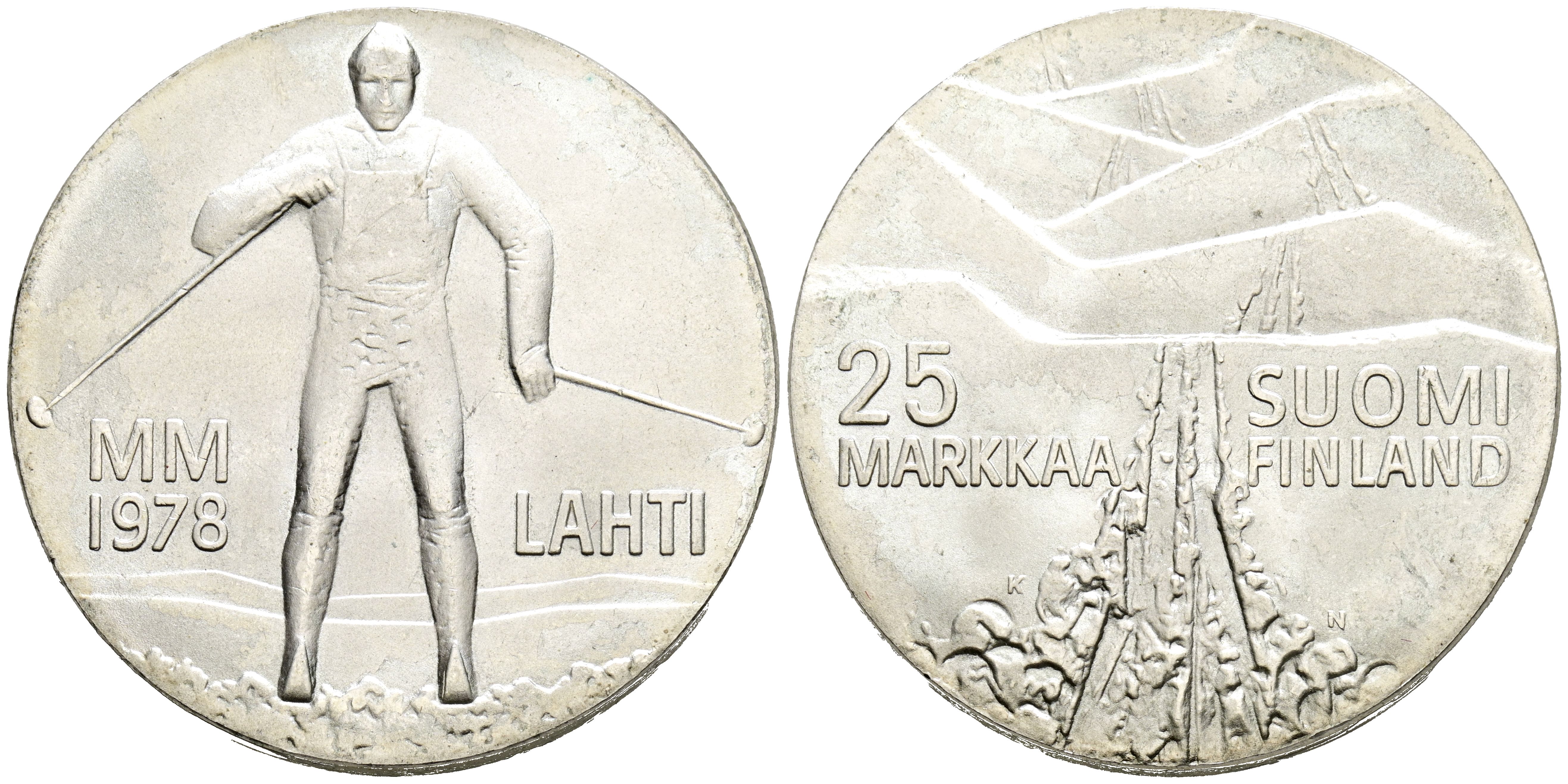 FINLANDIA. 25 Markkaa (Ar. 26,54g /37mm). 1978. Juegos de Invierno. (Km#56). EBC+.