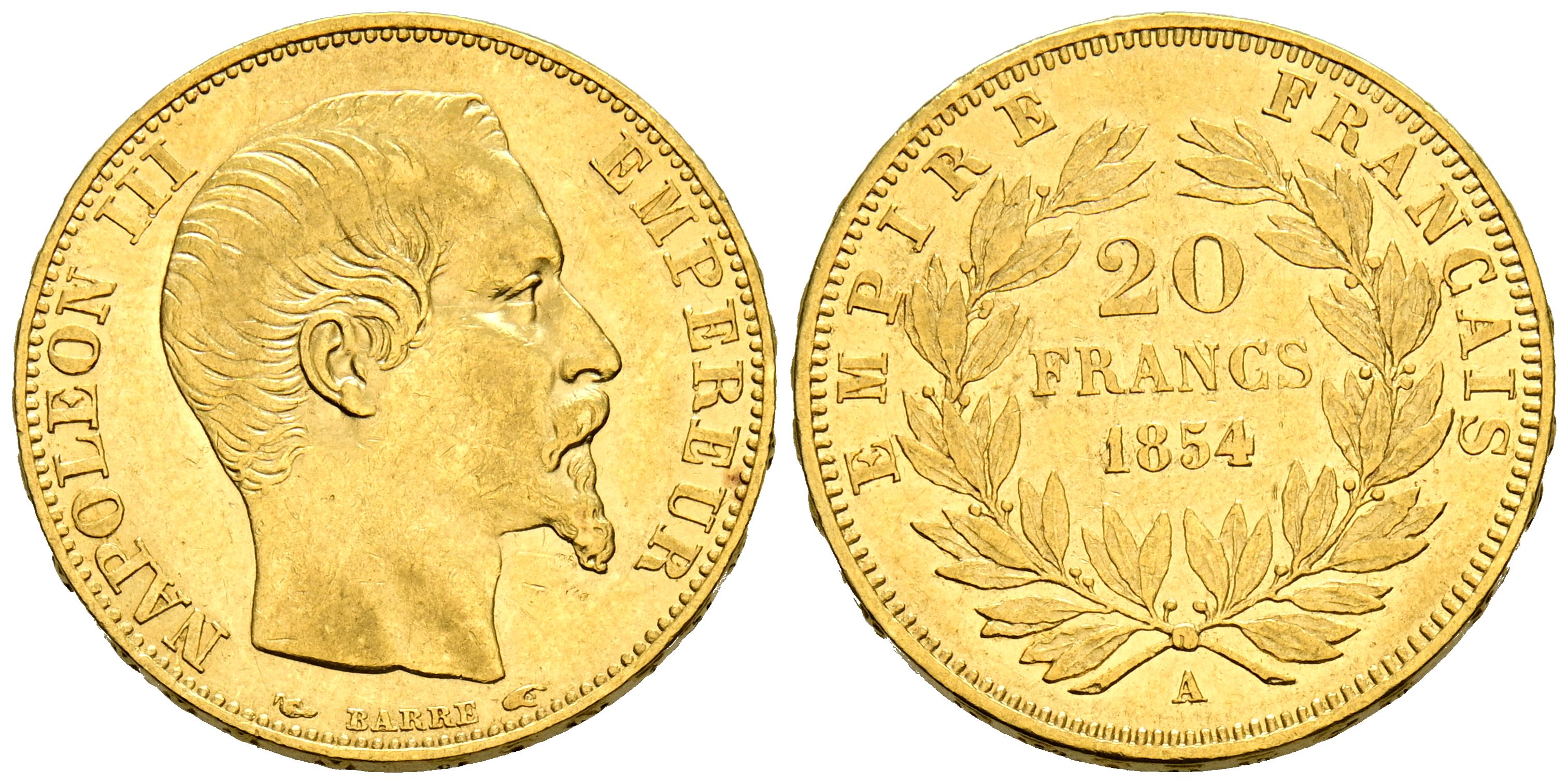 FRANCIA, Napoleón III (1852-1870). 20 Francos. (Au. 6,43g/21mm). 1854. París A. (Km#781.1). MBC-.