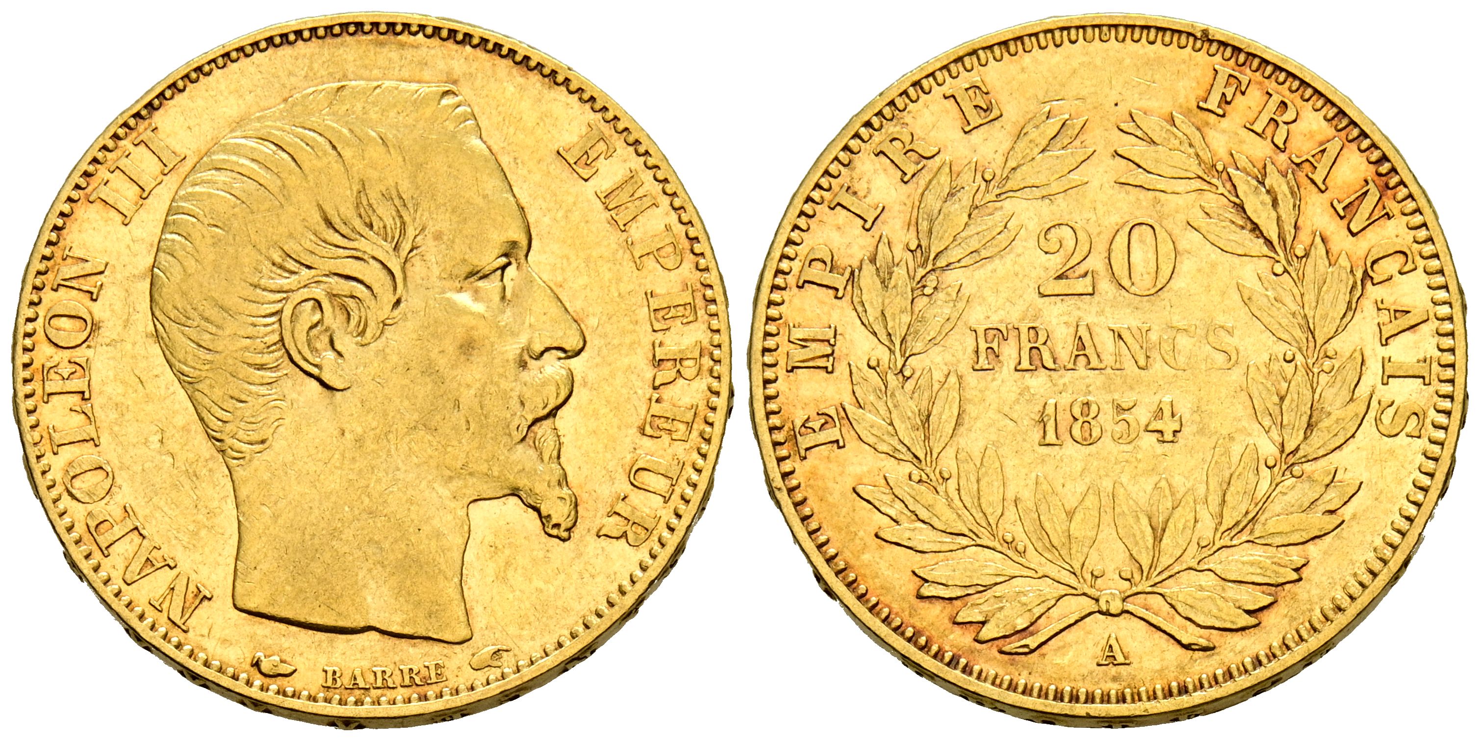 FRANCIA, Napoleón III (1852-1870). 20 Francos. (Au. 6,43g/21mm). 1854. París A. (Km#781.1). MBC-.