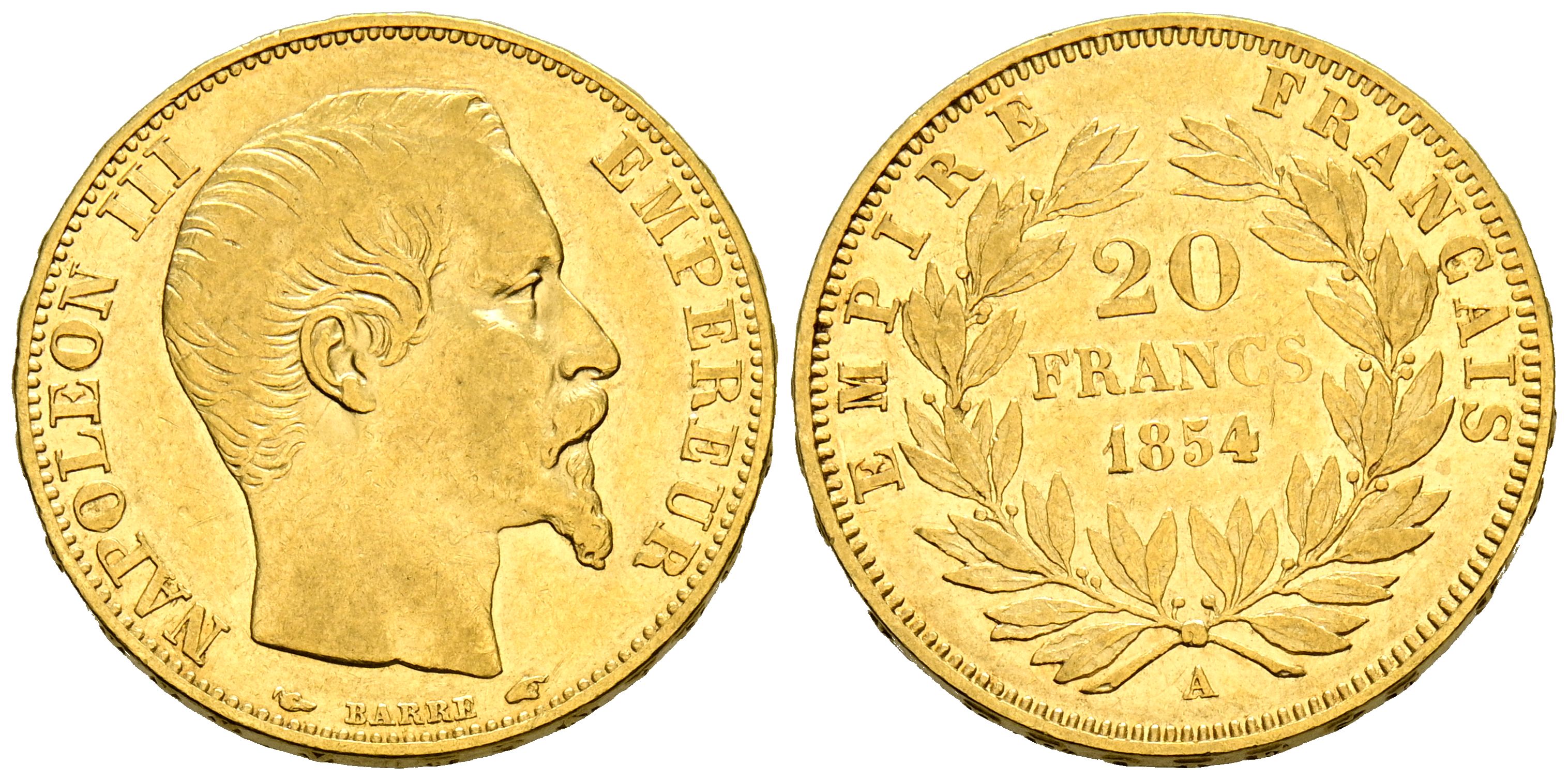 FRANCIA, Napoleón III (1852-1870). 20 Francos. (Au. 6,40g/21mm). 1854. París A. (Km#781.1). MBC-.