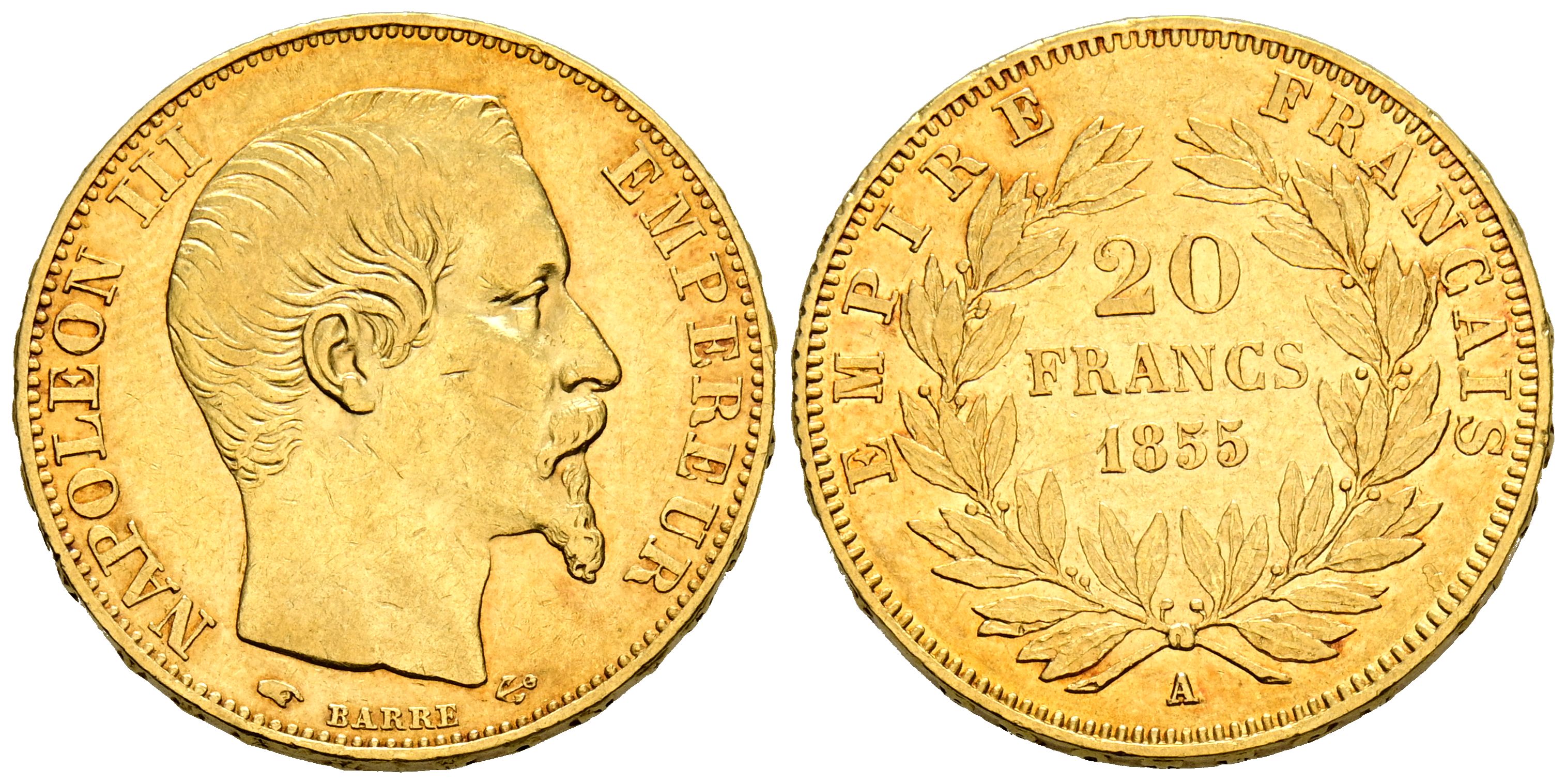 FRANCIA, Napoleón III (1852-1870). 20 Francos. (Au. 6,47g/21mm). 1855. París A. (Km#781.1). MBC-.