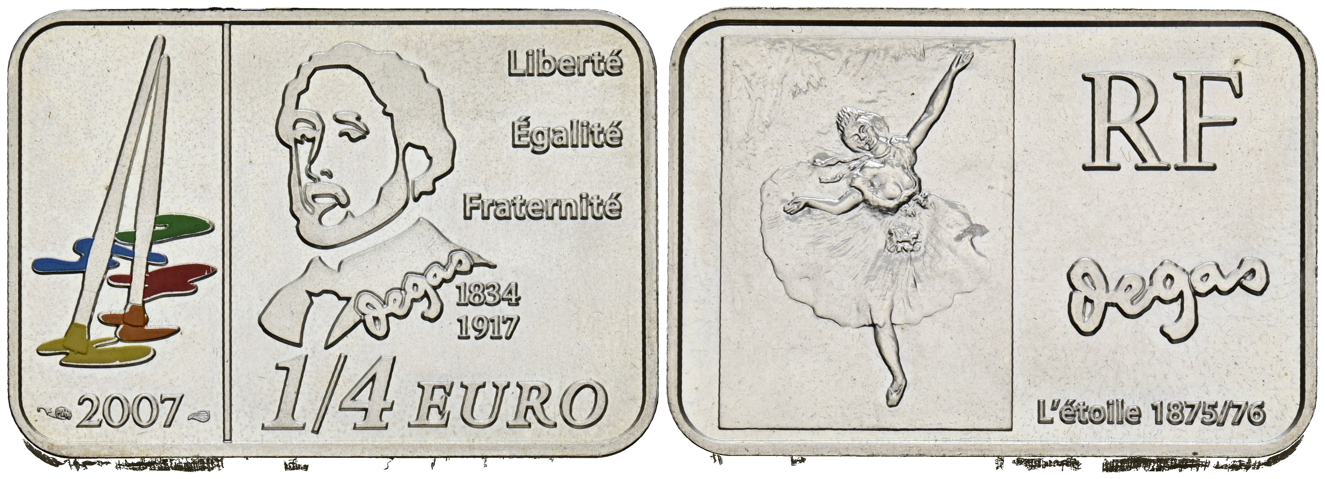 FRANCIA. 1/4 Euro. (Ar. 15,02g/30mm). 2007. Edgar Degás. (Km#1421). FDC. Incluye certificado de autenticidad. Escasa.