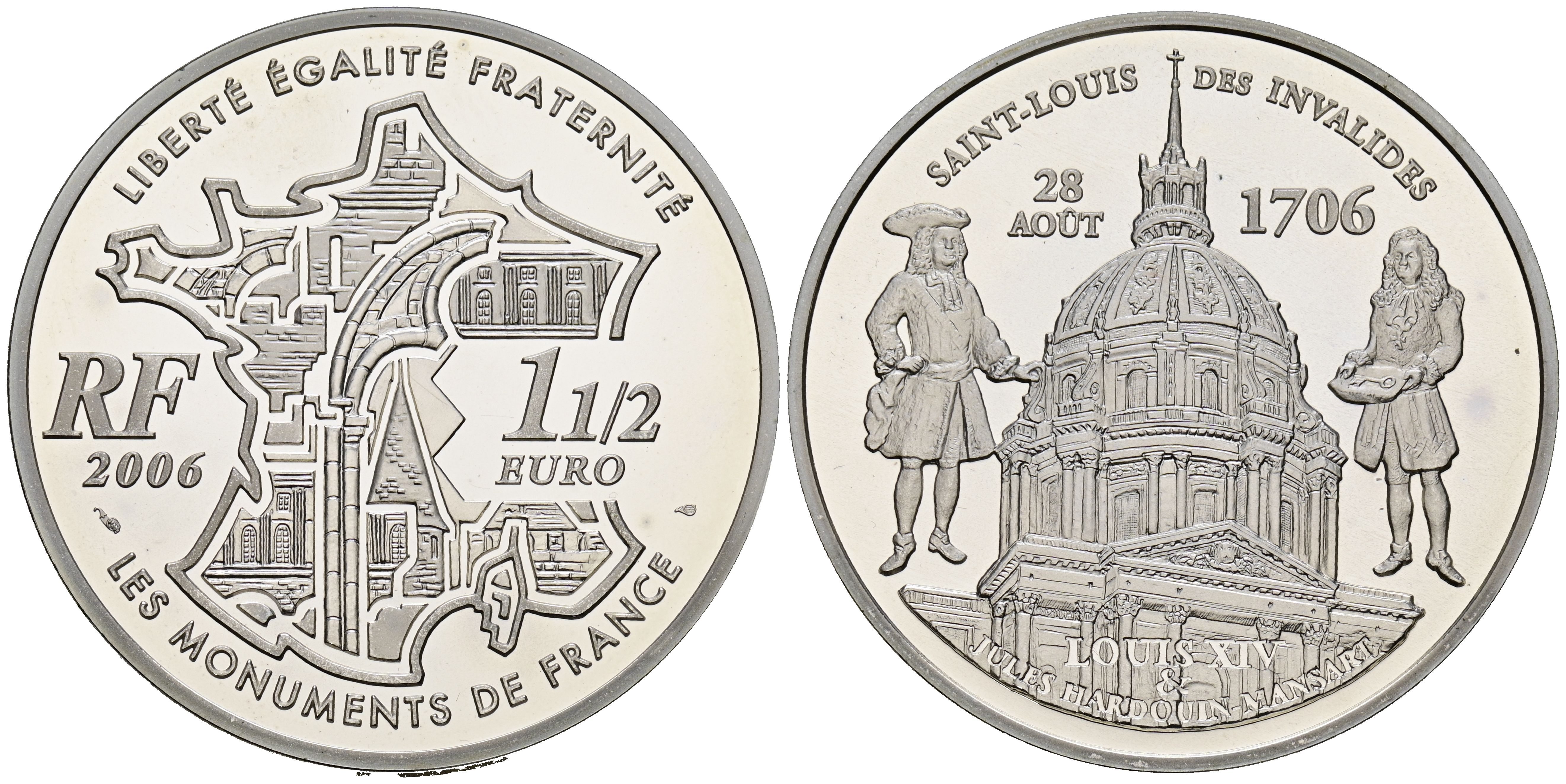 FRANCIA. 1 1/2 Euro. (Ar. 22,50g/37mm). 2006. Los Monumentos de Francia: 300 Aniversario de los Invalidos de París. (Km#1458). PROOF.