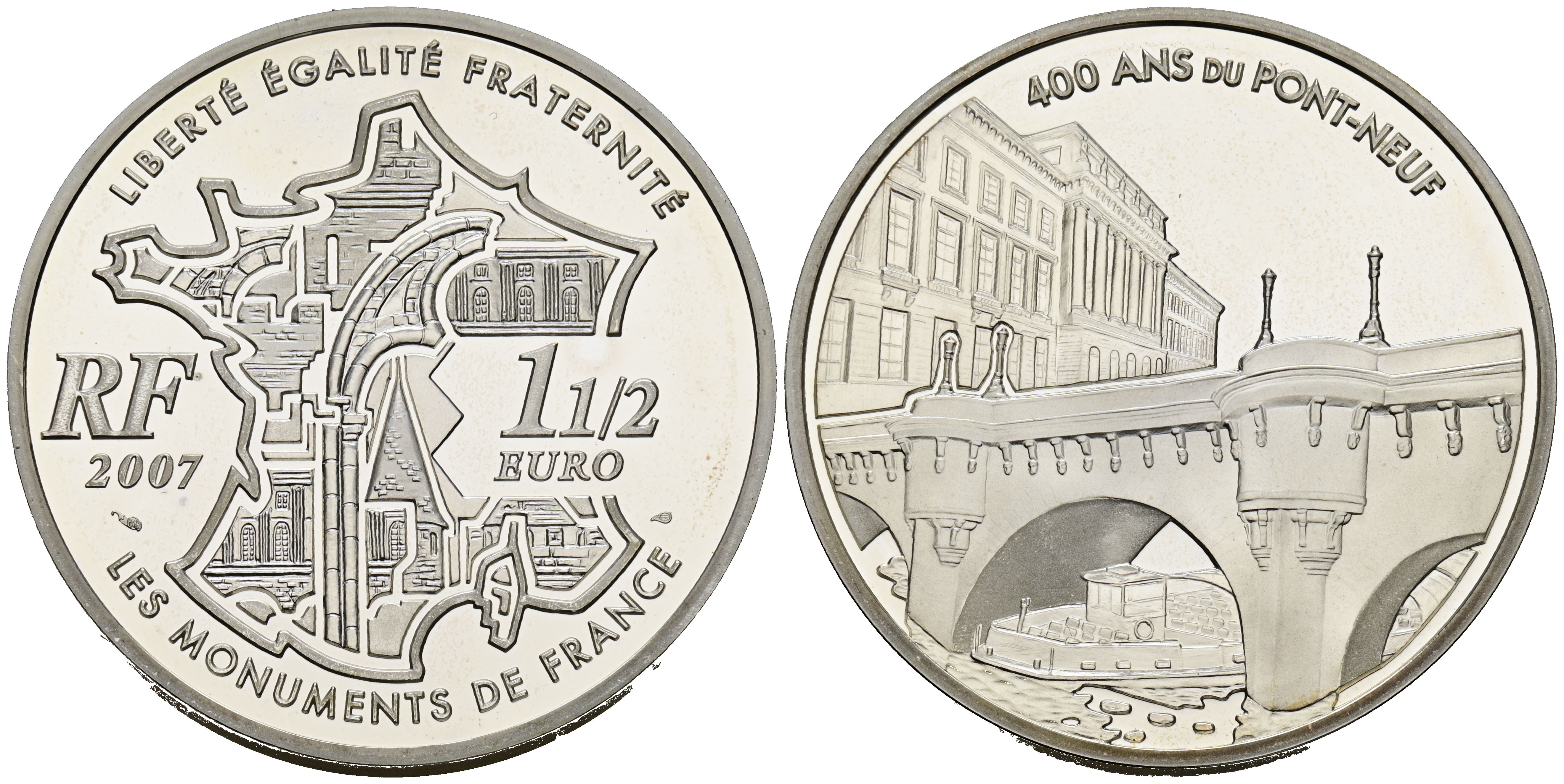 FRANCIA. 1 1/2 Euro. (Ar. 22,34g/37mm). 2007. Pont Neuf. (Km#1492). PROOF. Incluye certificado de autenticidad. Escasa.