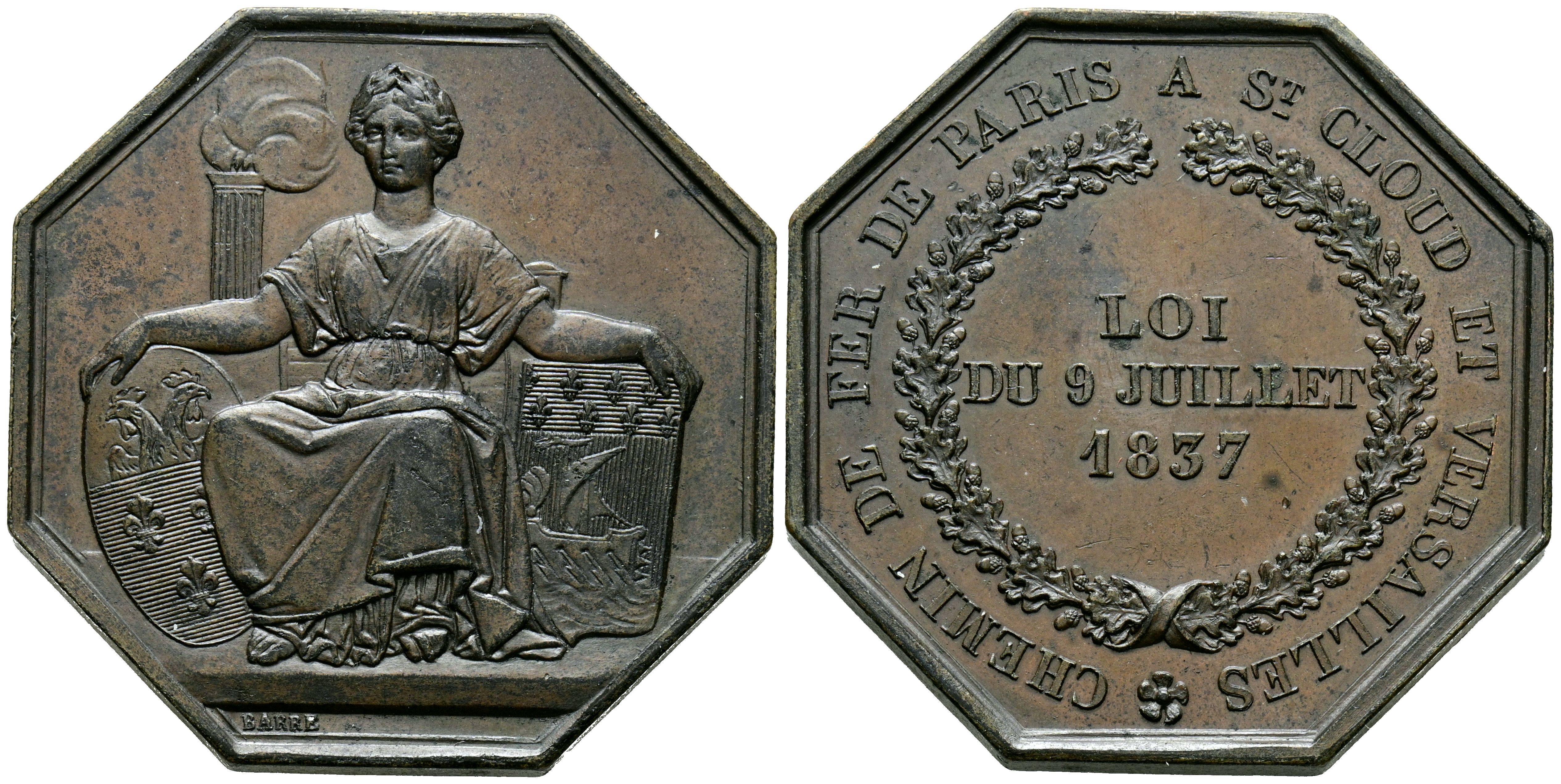 FRANCIA. Ferrocarril de Paris a Saint Cloud y Versalles. (Ae. 18,78g/35mm). 1837. Grabador: Barre. EBC-.