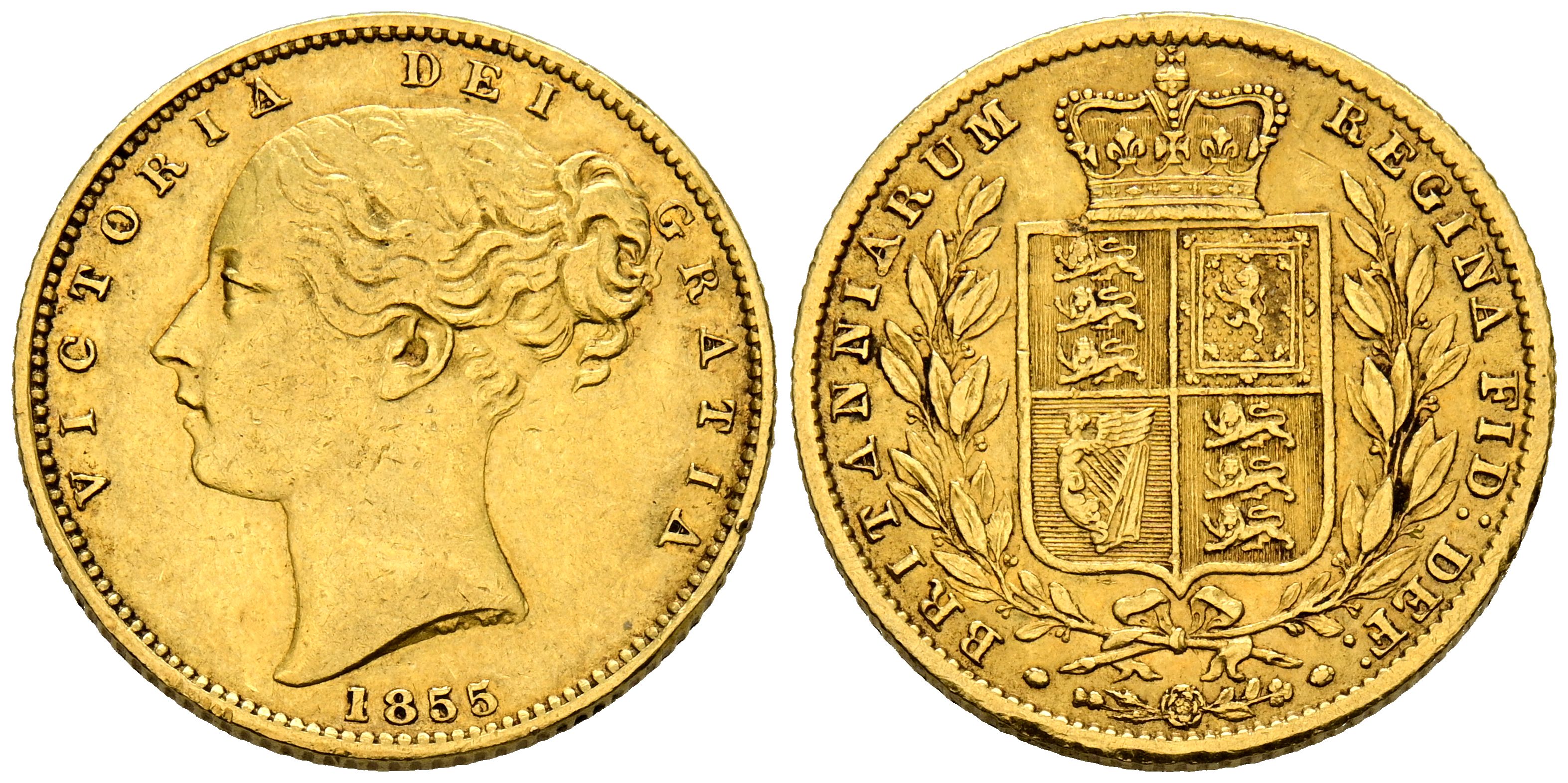 GRAN BRETAÑA. 1 Soberano (Au. 7,97g/22mm). 1855. Reina Victoria. Londres. (Km#736). MBC/MBC+.