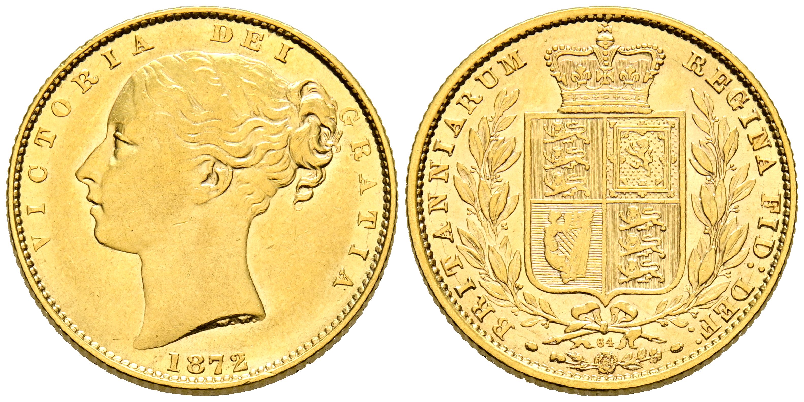 GRAN BRETAÑA, Victoria (1837-1901). Soberano. (Au. 7,97g/22mm). 1872. Londres. (Km#736.1). MBC.