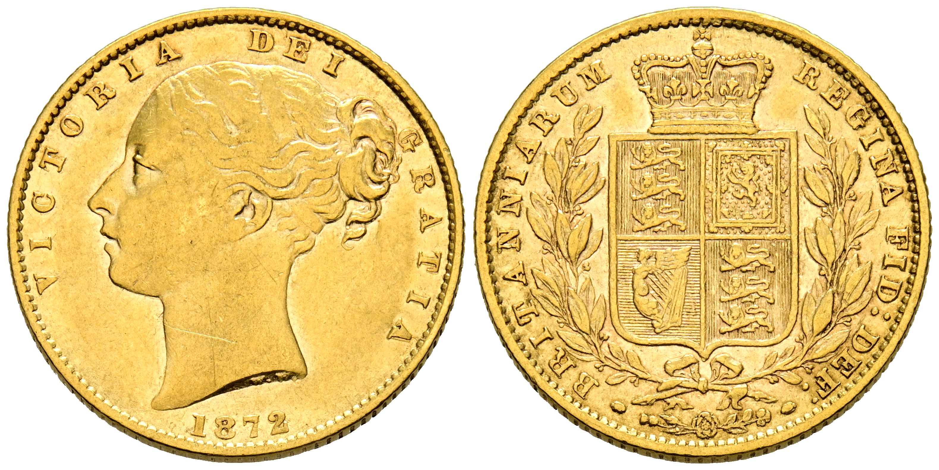 GRAN BRETAÑA, Victoria (1837-1901). Soberano. (Au. 7,93g/22mm). 1872. Londres. (Km#736.1). MBC-.