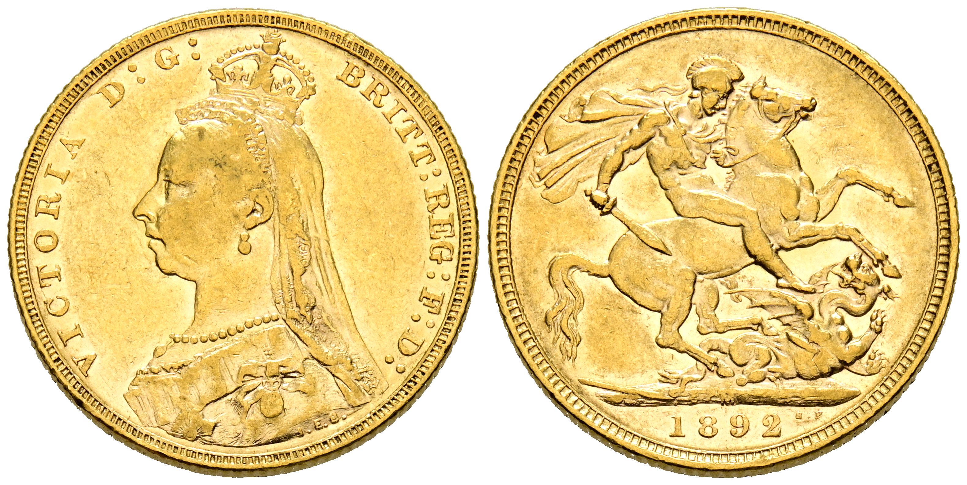 GRAN BRETAÑA, Victoria (1837-1901). Soberano. (Au. 7,97g/22mm). 1892. Londres. (Km#767). MBC-.