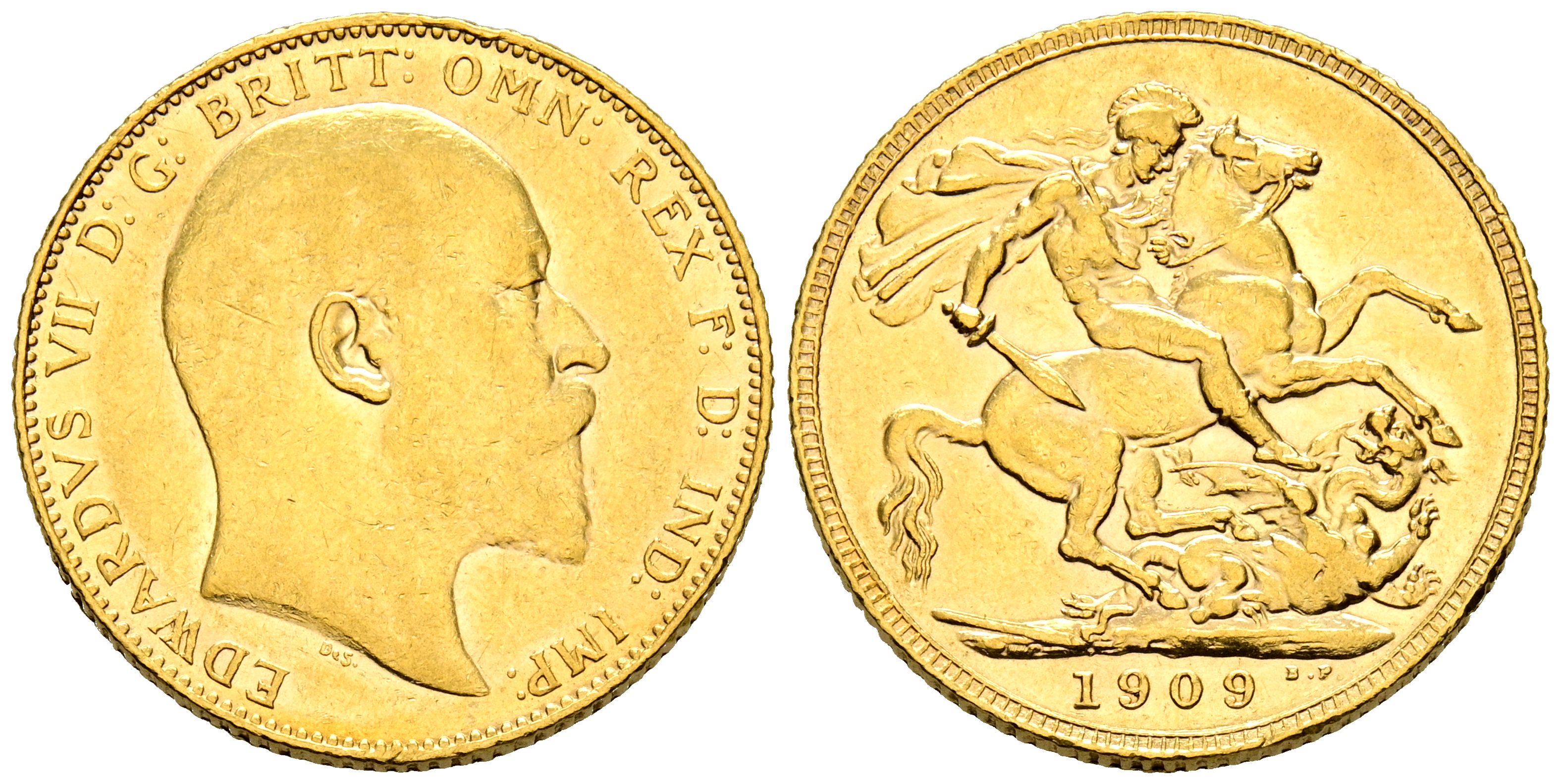 GRAN BRETAÑA, Eduardo VII (1901-1910). Soberano. (Au. 7,98g/22mm). 1909. Londres. (Km#805). MBC.