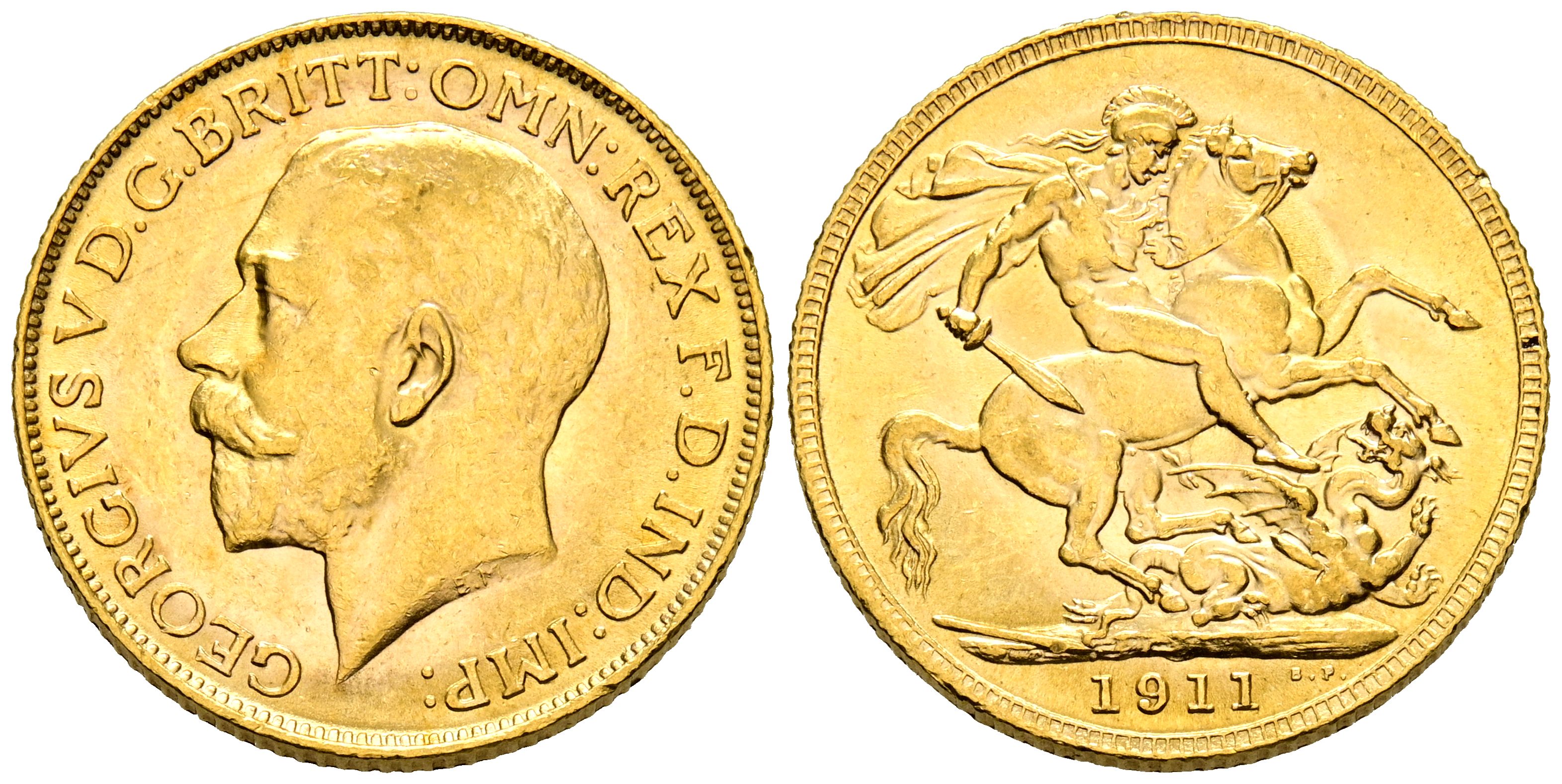 GRAN BRETAÑA, Jorge V (1910-1936). Soberano. (Au. 7,99g/22mm). 1911. Londres. (Km#820). MBC+.