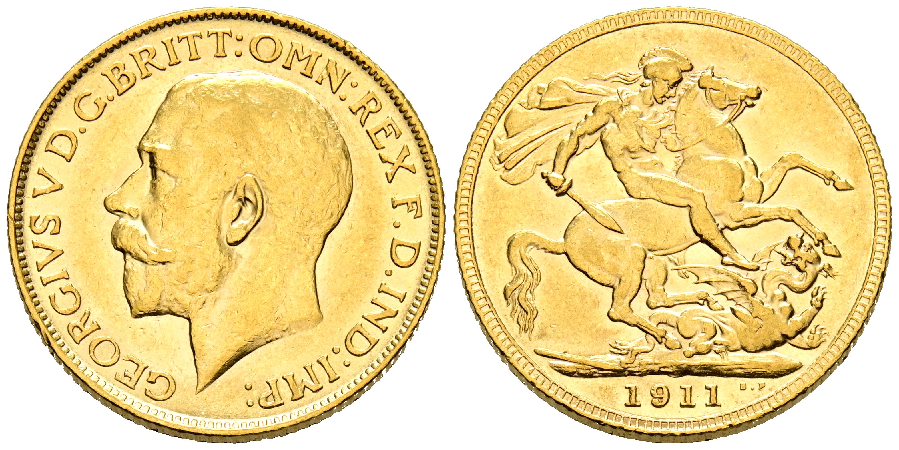 GRAN BRETAÑA, Jorge V (1910-1936). Soberano. (Au. 7,99g/22mm). 1911. Londres. (Km#820). MBC+.