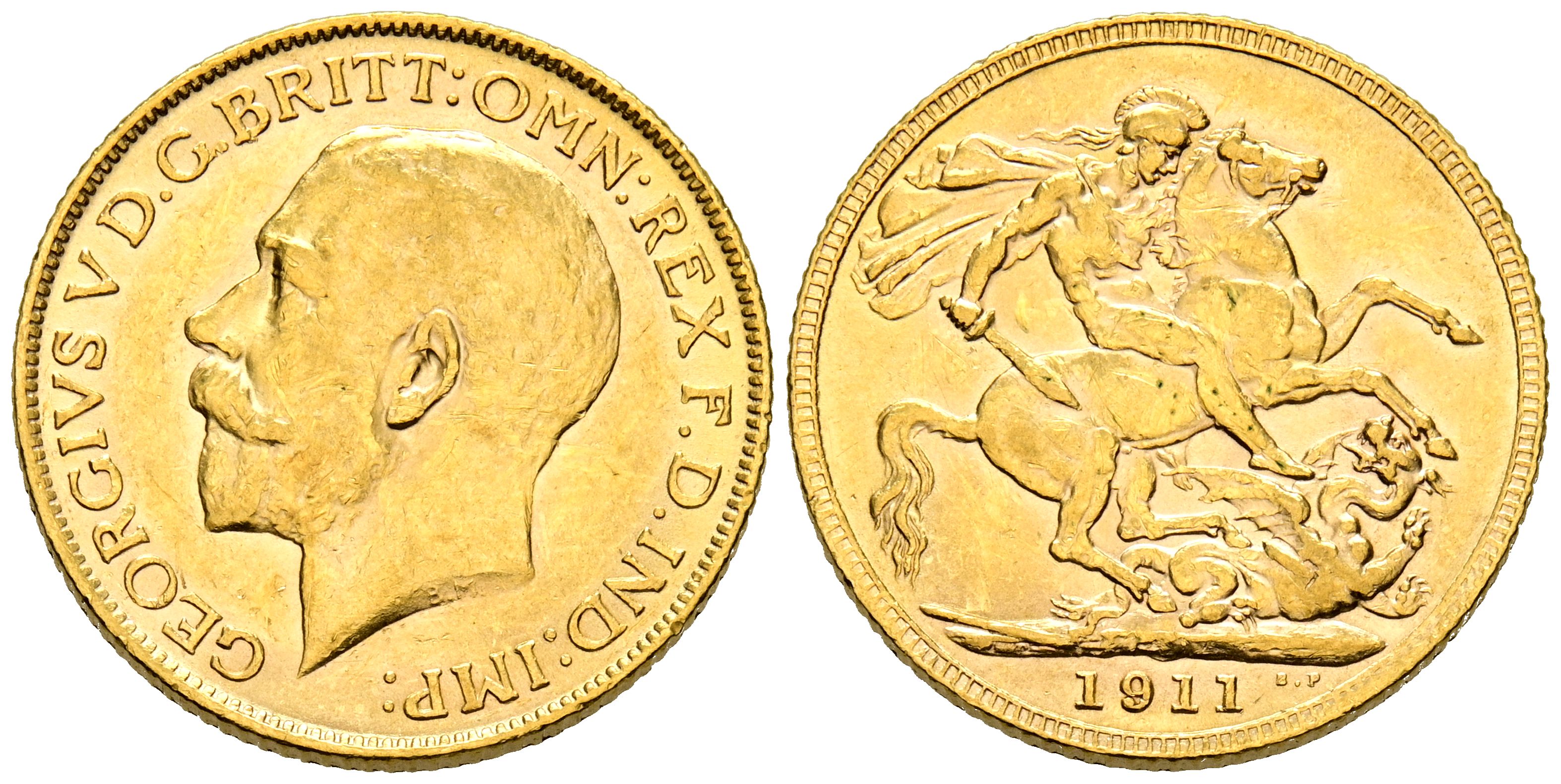 GRAN BRETAÑA, Jorge V (1910-1936). Soberano. (Au. 7,98g/22mm). 1911. Londres. (Km#820). MBC+.