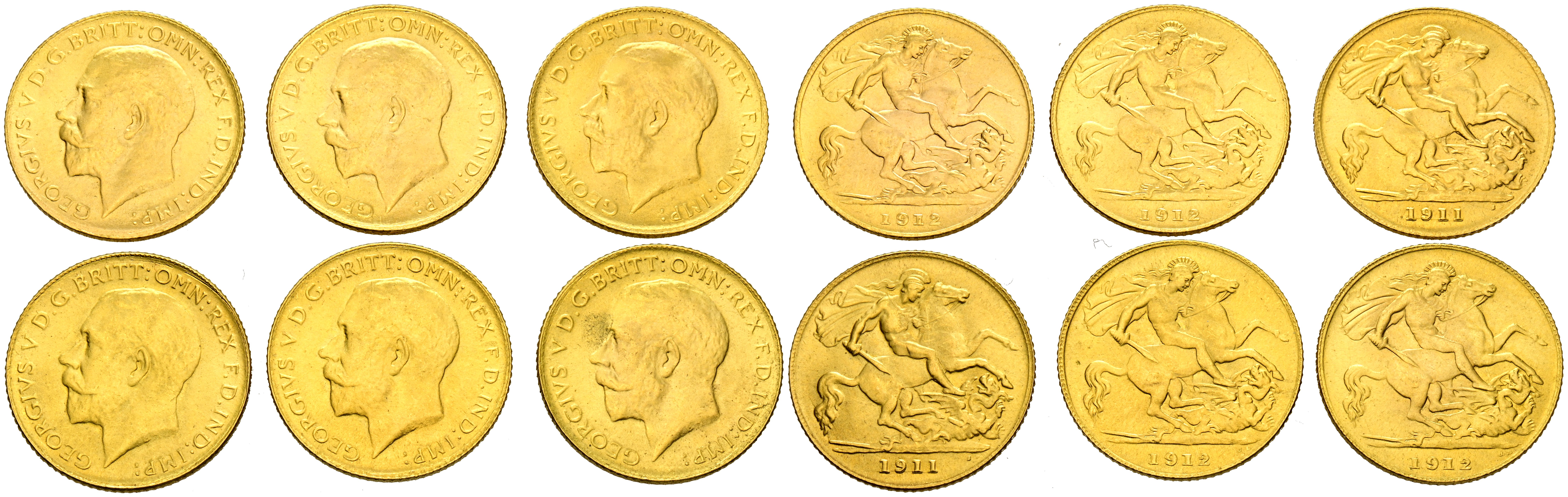 GRAN BRETAÑA. Conjunto de 6 Soberanos, todos ellos copias de joyería de 0,870 milésimas. Peso total del conjunto: 23,94g. A EXAMINAR.