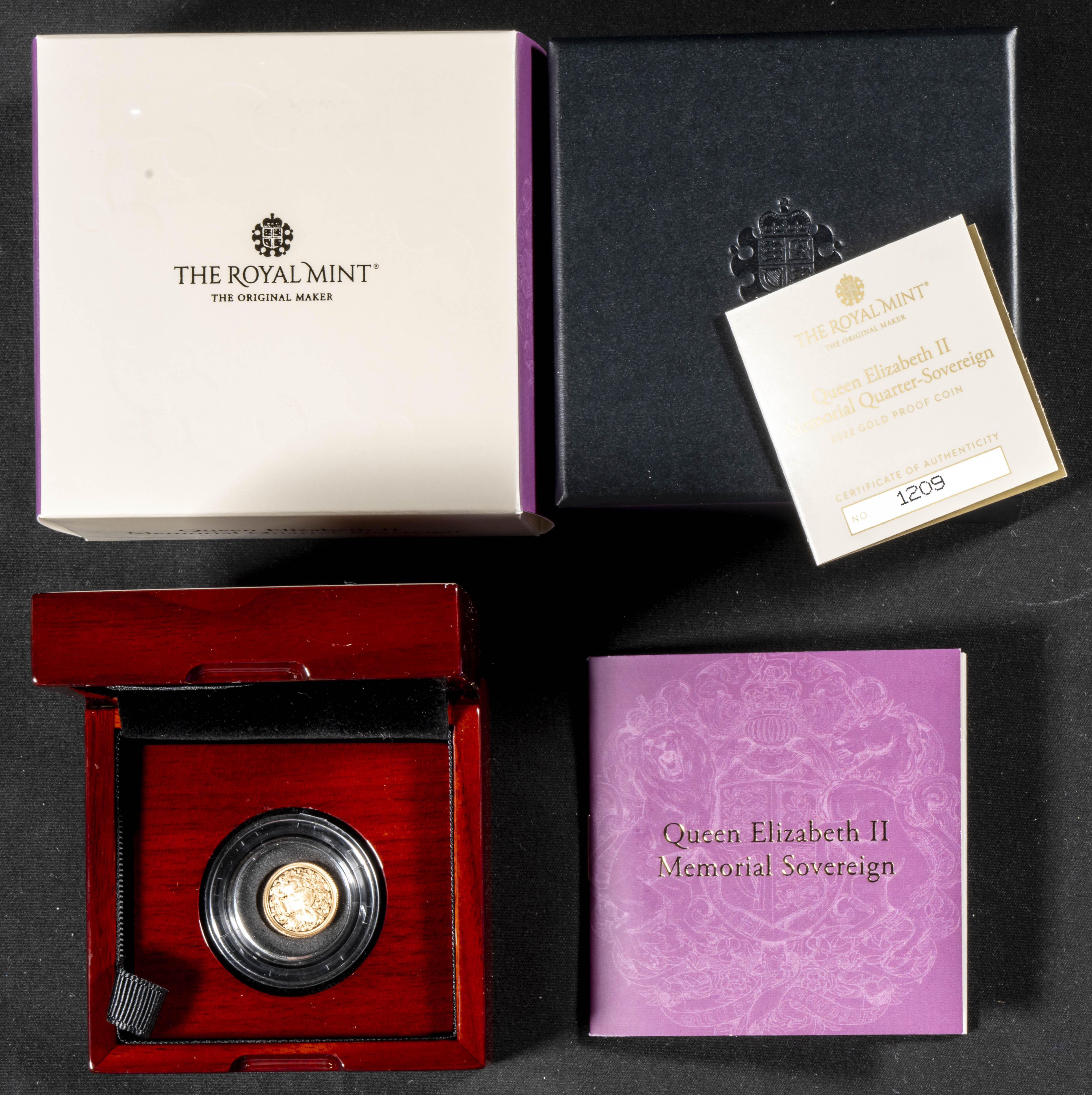 GRAN BRETAÑA. 1/4 de Soberano (Au. 1,99g/14mm). 2022. Carlos III. Acuñada en conmemoración por el fallecimiento de la reina Isabel II. PROOF. Incluye estuche original y certificado de autenticidad. Escasa tirada.