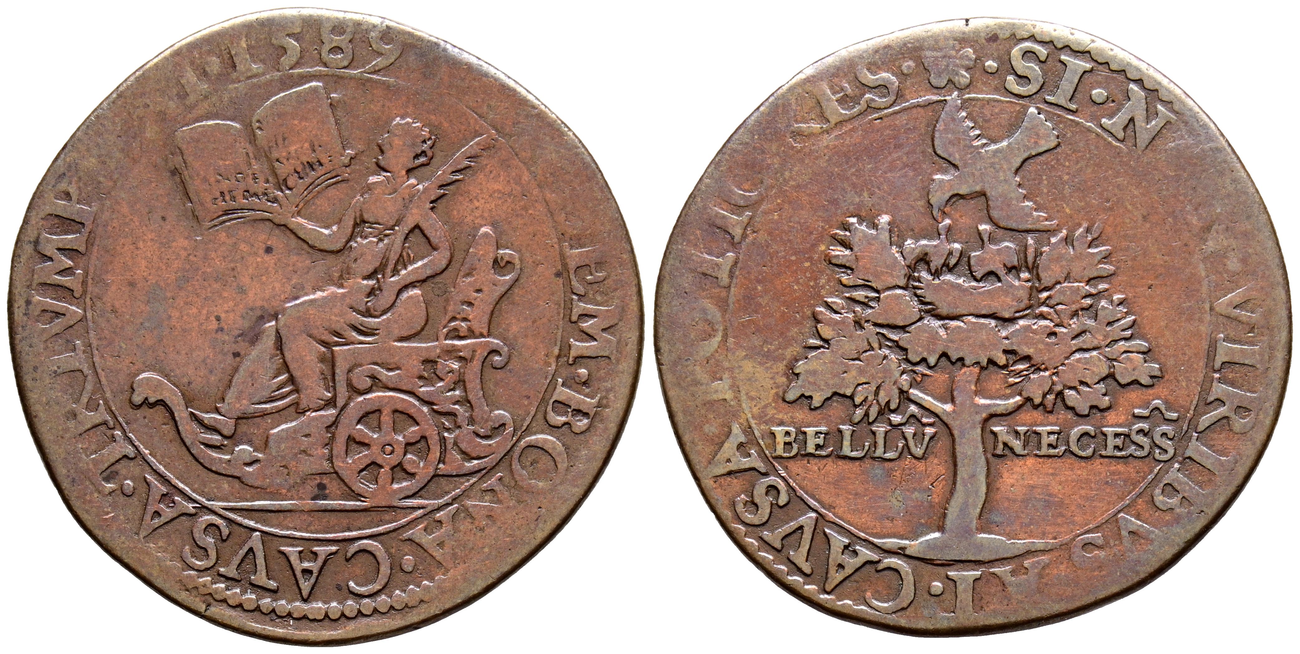INGLATERRA, Dinastía Tudor (tiempo de Isabel I). Jetón. (Ae. 4,74g/29mm). 1589. Ceca holandesa incierta. (Dugniolle 3230; Van Loon I 394). Conmemoración de la derrota de la Armada Invencible. MBC-.
