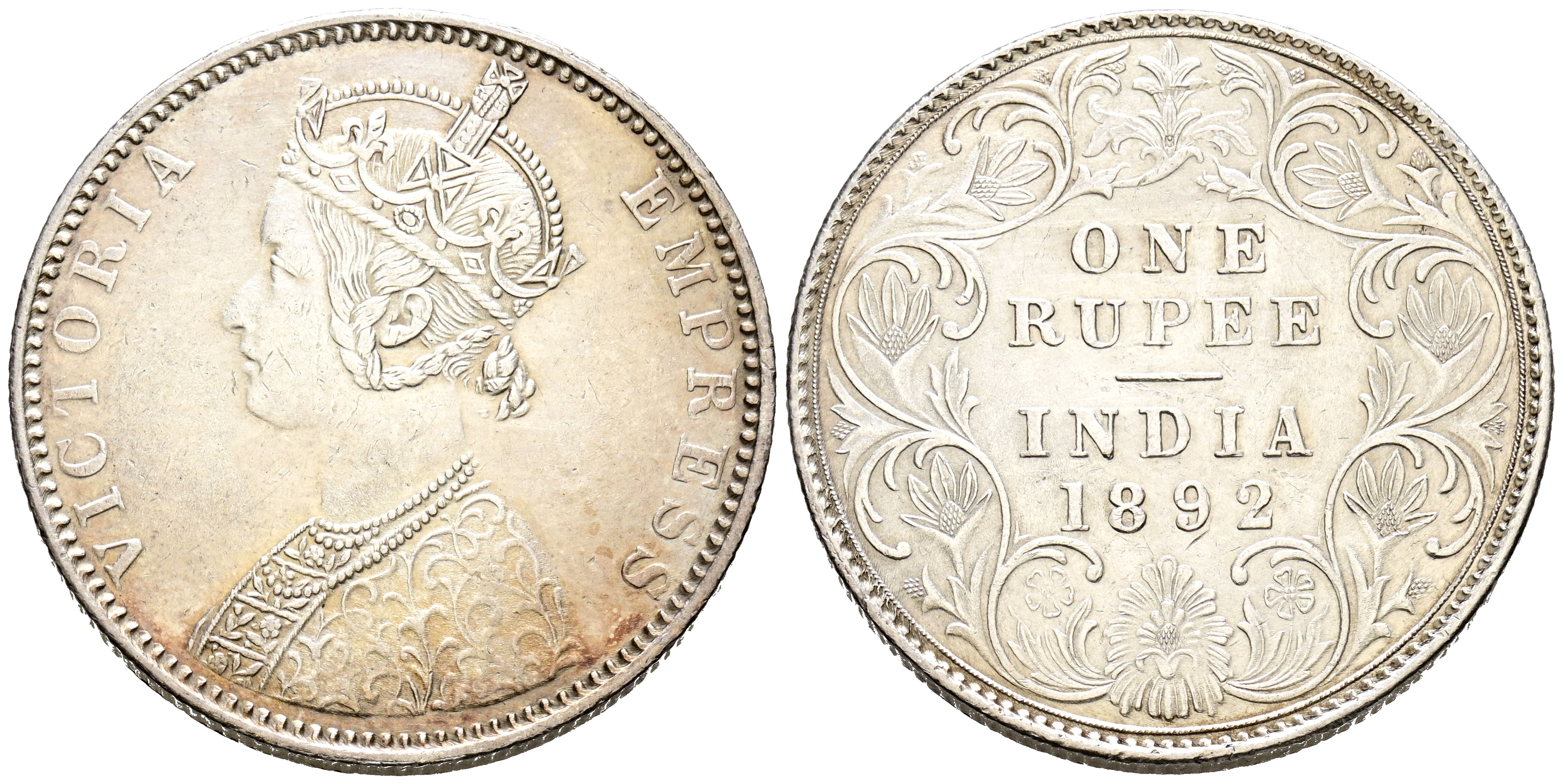 INDIA. 1 Rupia. (Ar. 11,67g/30mm). 1892. (Km#473.2). EBC-.