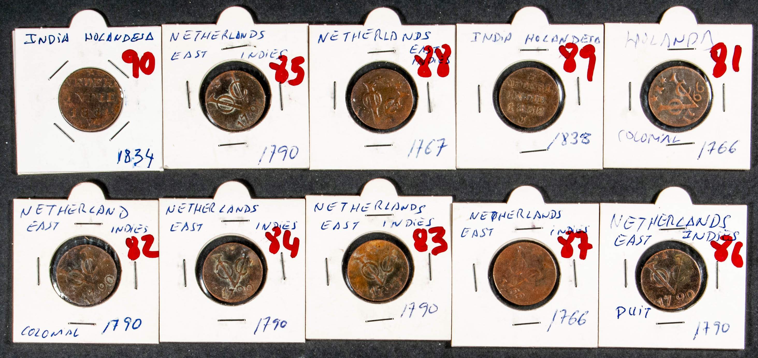 INDIA (Holandesa). Bonito e interesante conjunto de 10 cobres (I Cent y Duits principalmente) de esta etapa colonial y acuñadas entre los siglos XVIII y XIX. Variedad de fechas. Diferentes estados de conservación. A EXAMINAR.