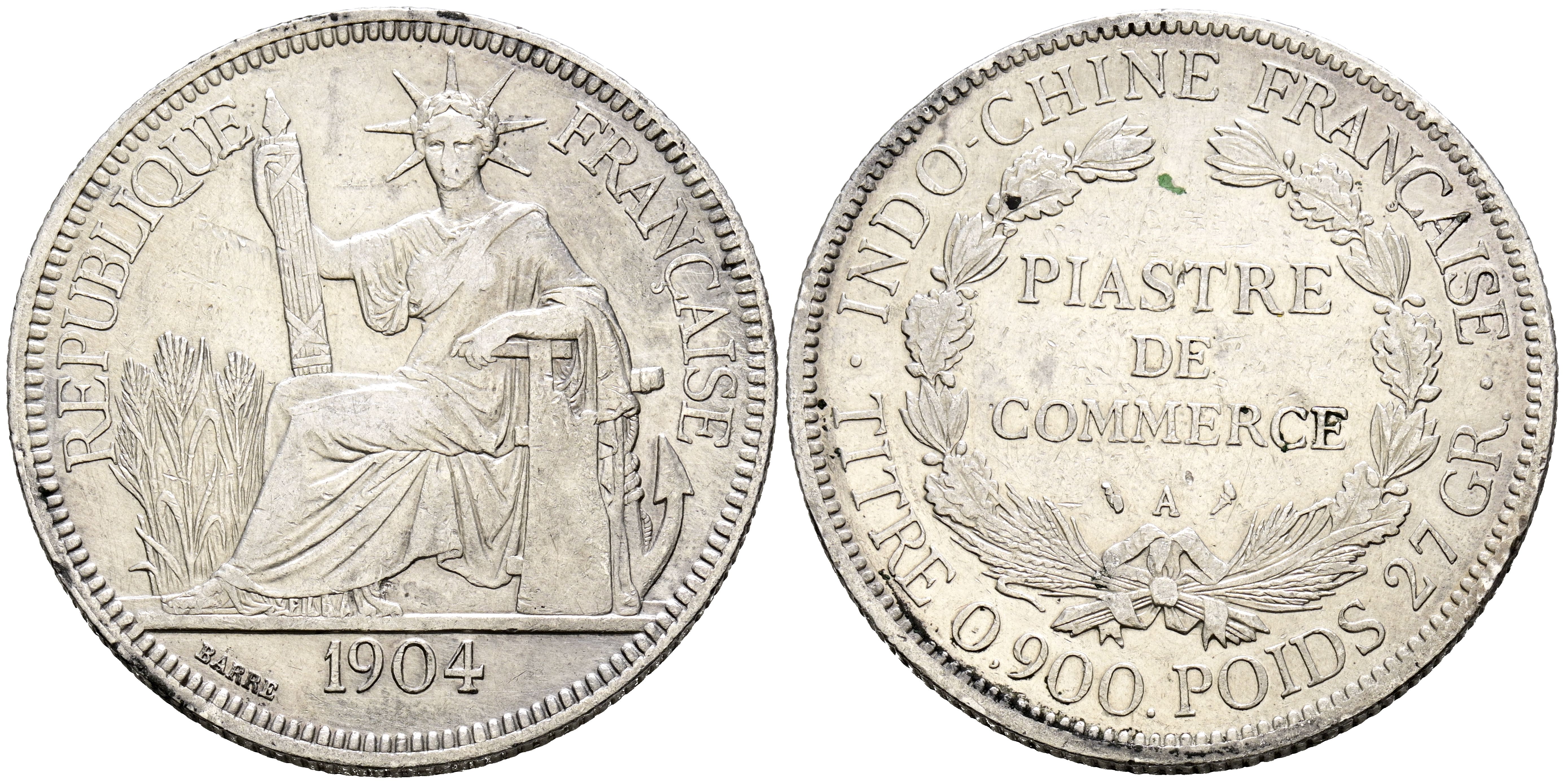 INDOCHINA (Francesa). Piastra (Ar. 26,82g/39mm). 1904. París A. (Km#5a.1). MBC.