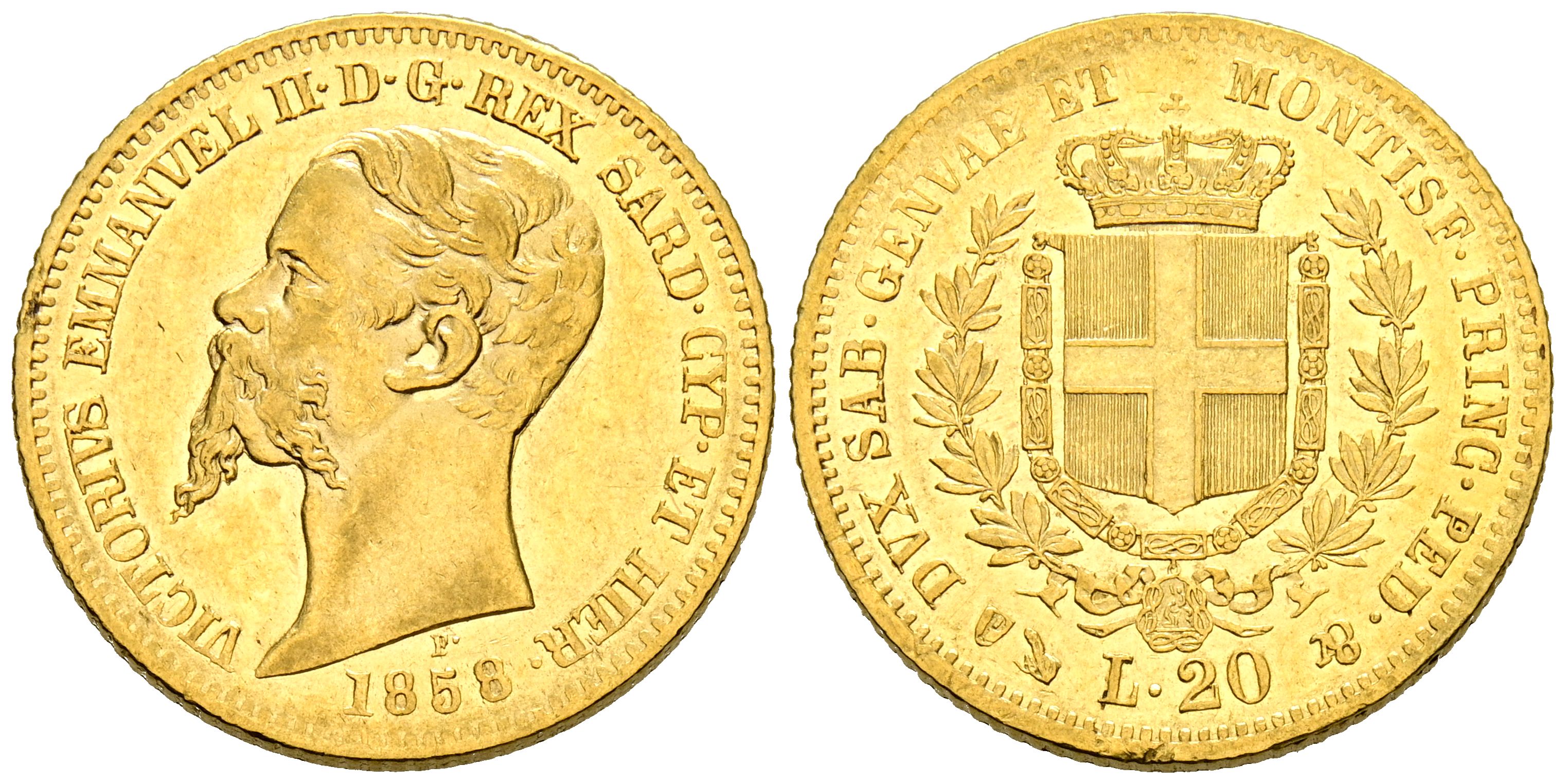 ITALIA, Victor Mauel II (1849-1861). 20 Liras. (Au. 6,44g/21mm). 1858. Génova. (Km#146.2). MBC+.