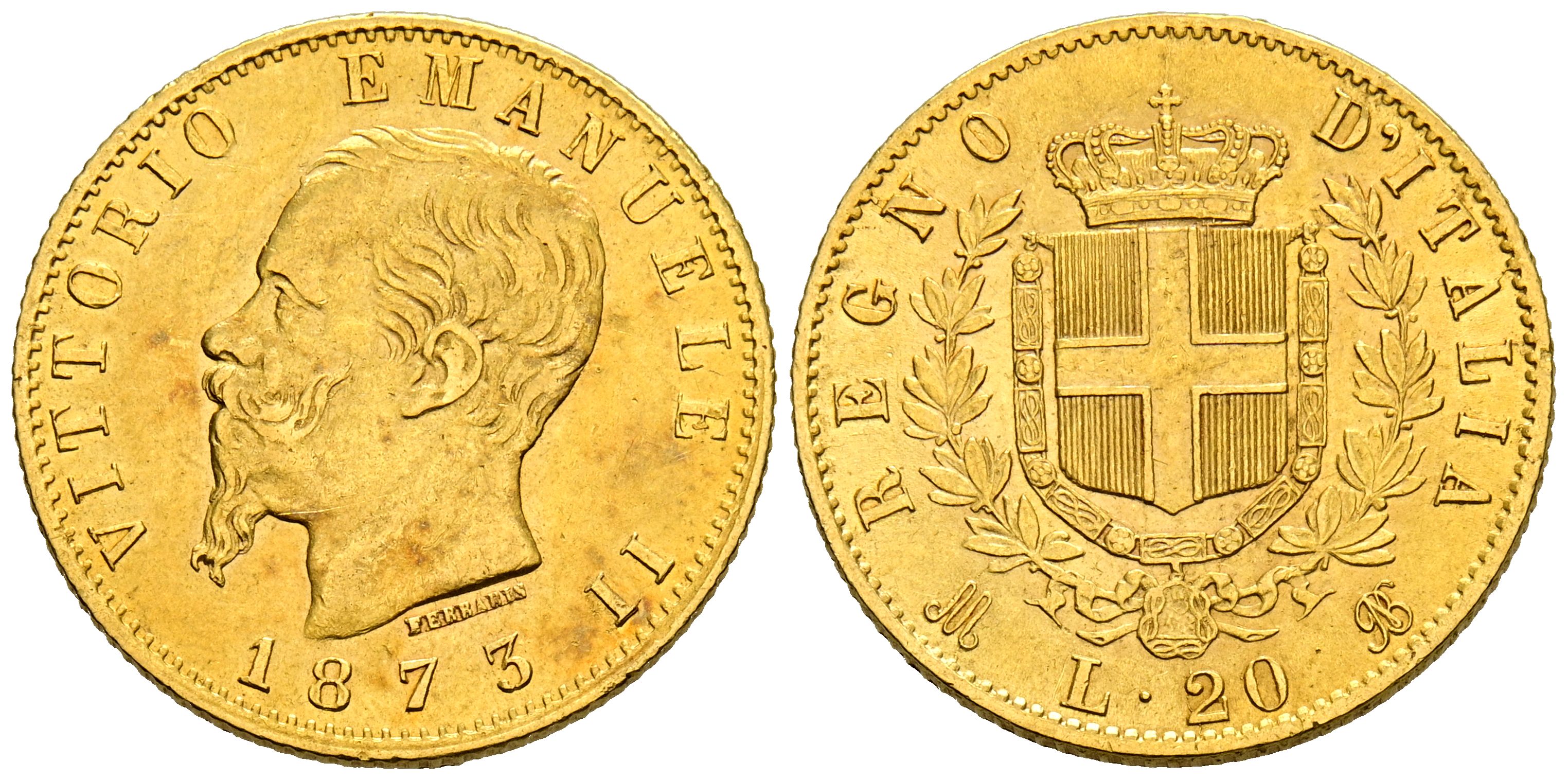 ITALIA, Victor Mauel II (1849-1861). 20 Liras. (Au. 6,41g/21mm). 1873. Milám. (Km#10). MBC.