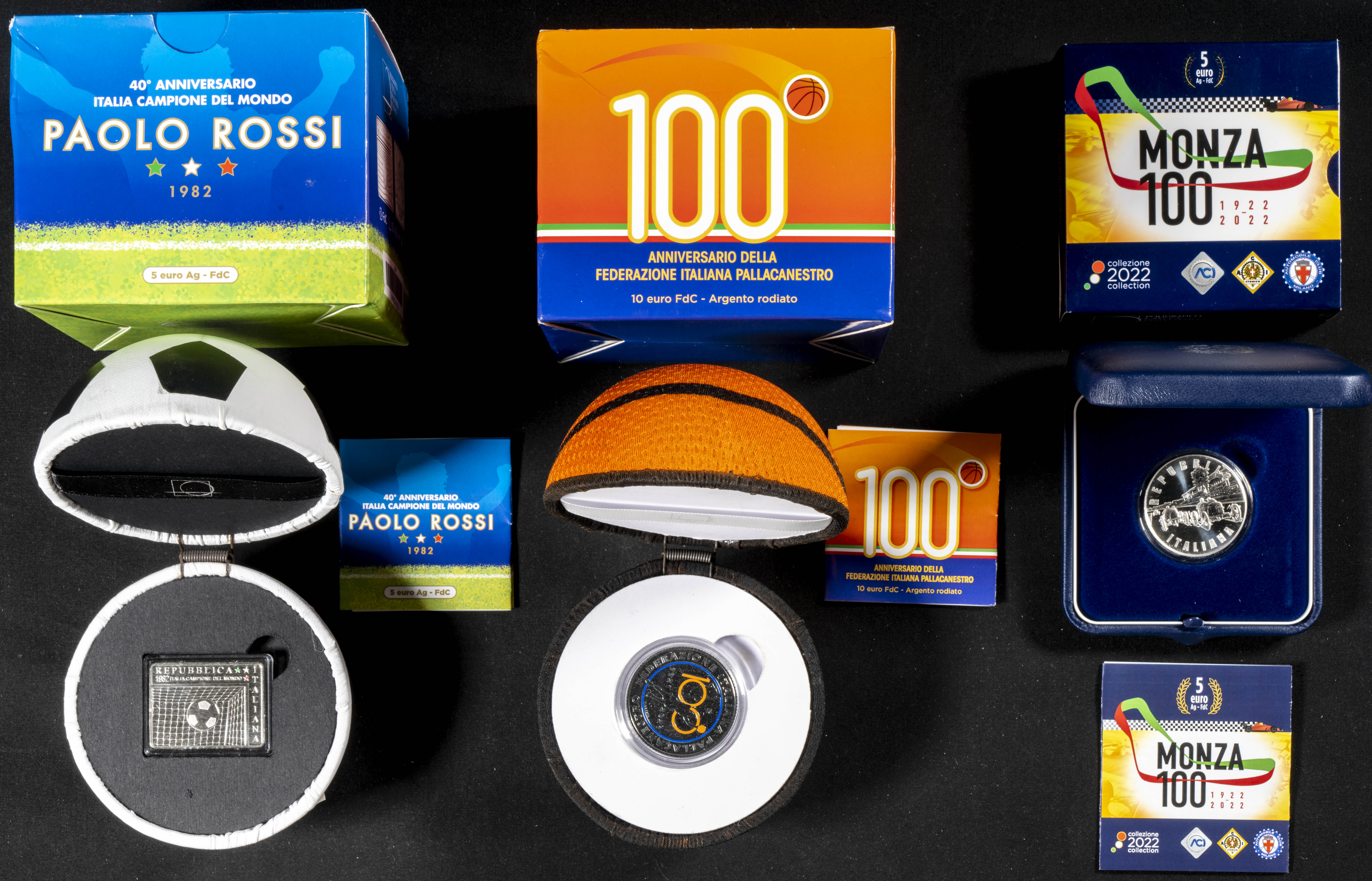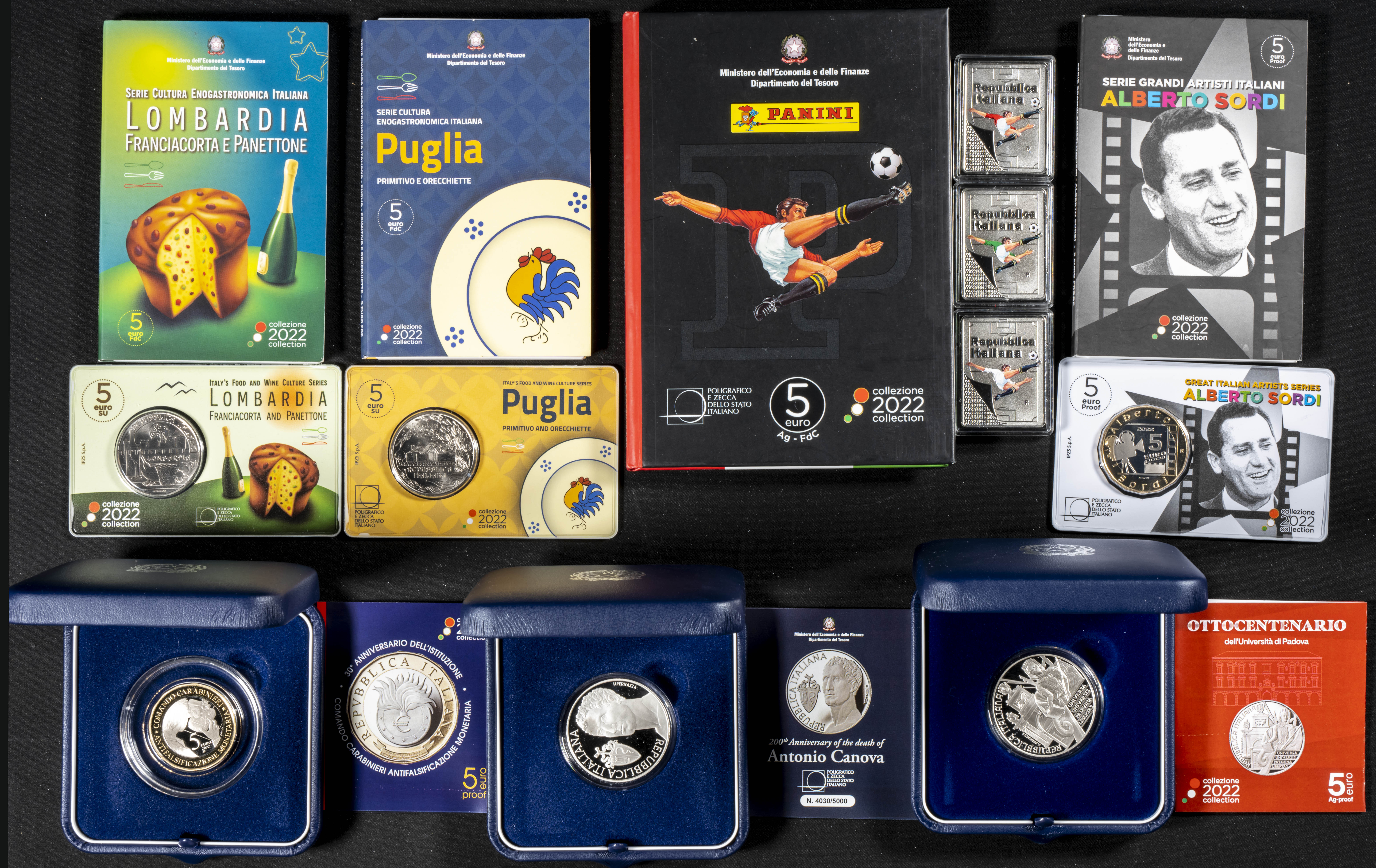 ITALIA. Interesante y variado conjunto formado por 10 sets y estuches conmemorativos acuñados por la Zecca Dello Statii Italiano. Todas las piezas con valor facial de 5 Euros (2022) excepto una de 10€ (2021). Varias piezas en plata. Magnífico estado de conservación general. A EXAMINAR.