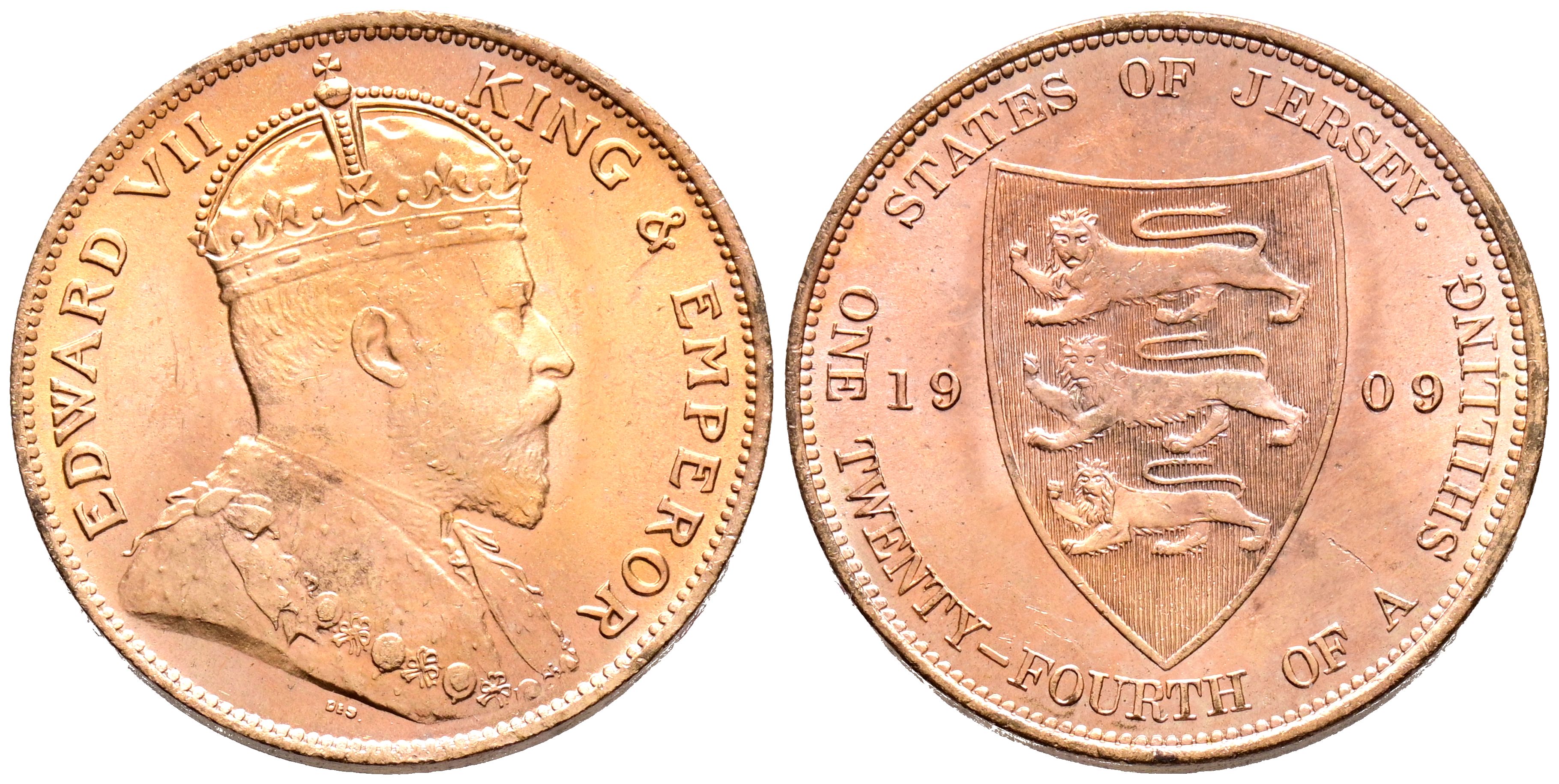 JERSEY. 1/24 Shilling (Ae. 5,74g/25mm). 1909. Eduardo VII. (Km#9). SC. Precioso ejemplar.