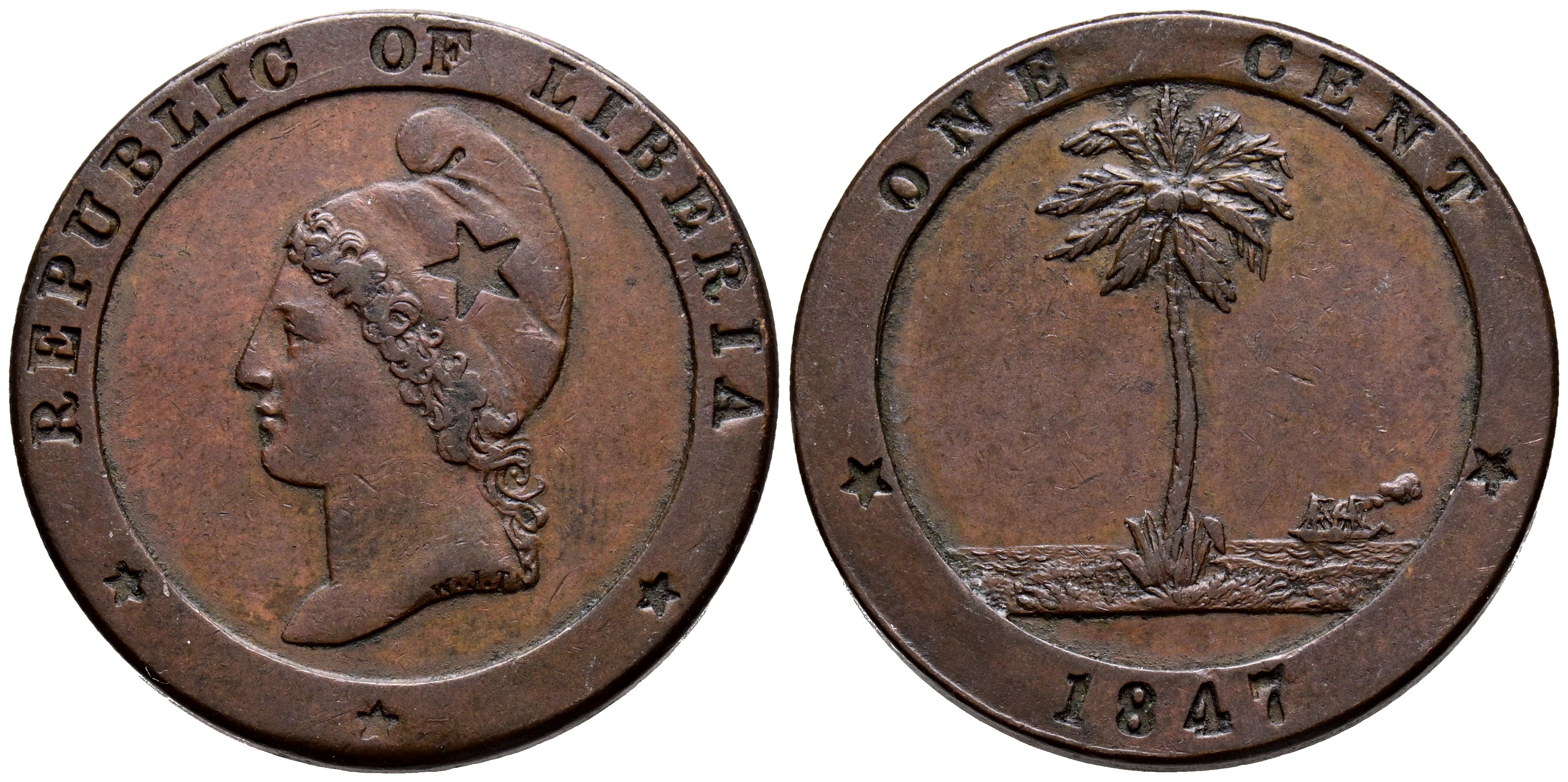 LIBERIA. 1 Cent (Ae. 8,80g/28mm). 1847. (Km#1). MBC+. Buen ejemplar.