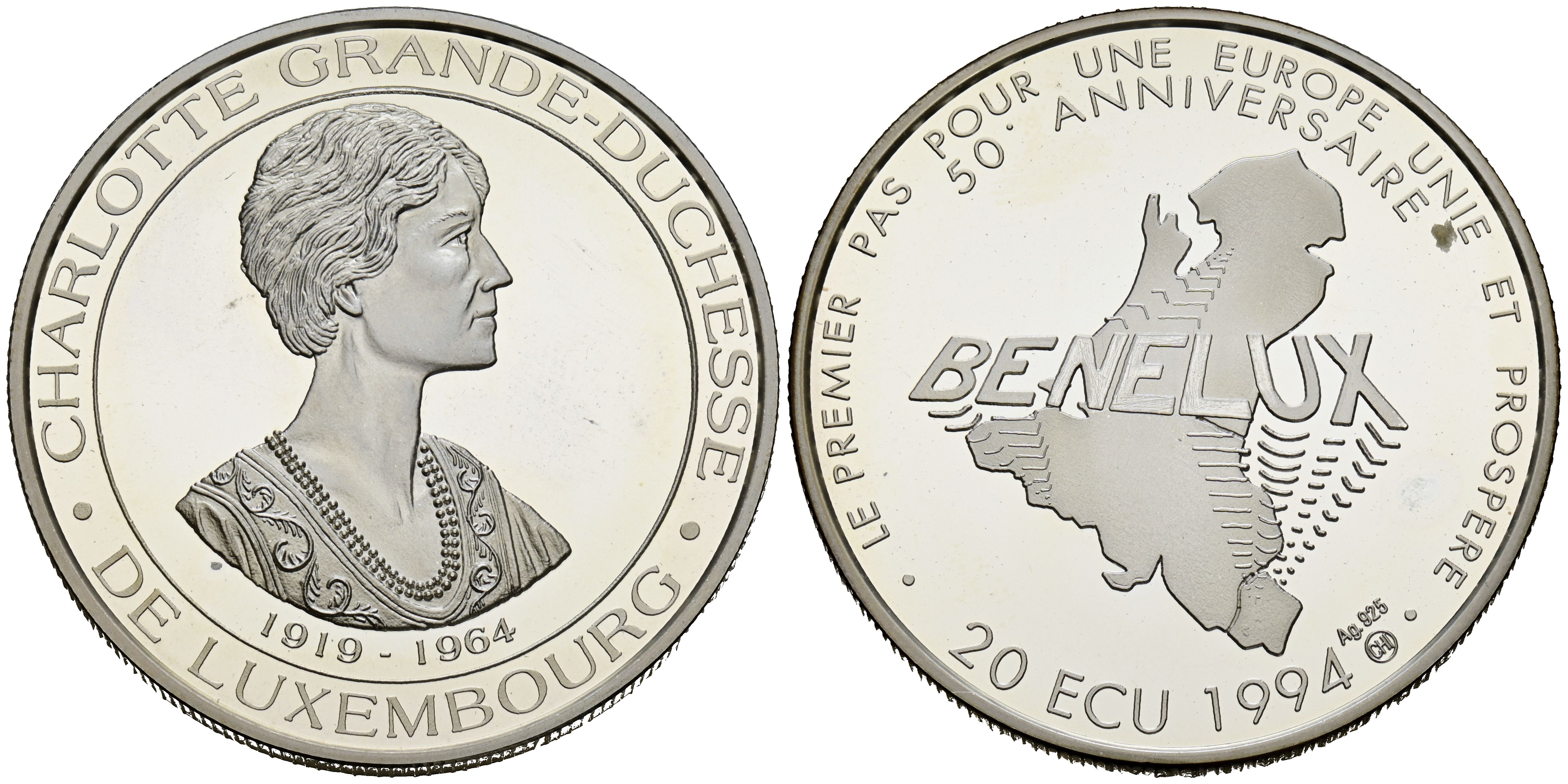 LUXEMBURGO. 20 ECU (Ar. 24,95g/39mm). 1994. Primer Paso para una Europa Unida. PROOF.