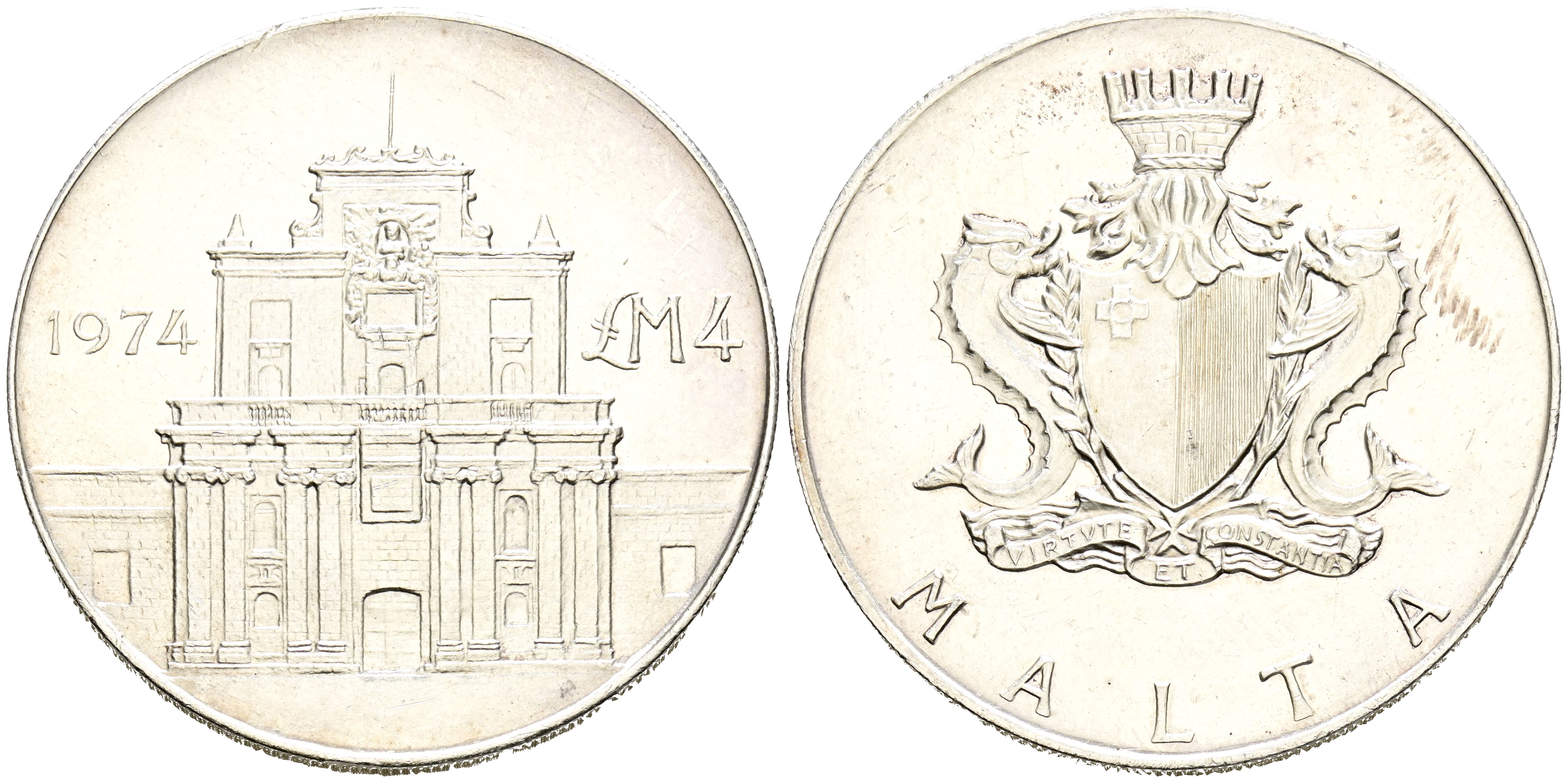 MALTA. 4 Liras (Ar. 20,10g/38mm). 1974. (Km#25). EBC. Rayitas de limpieza.
