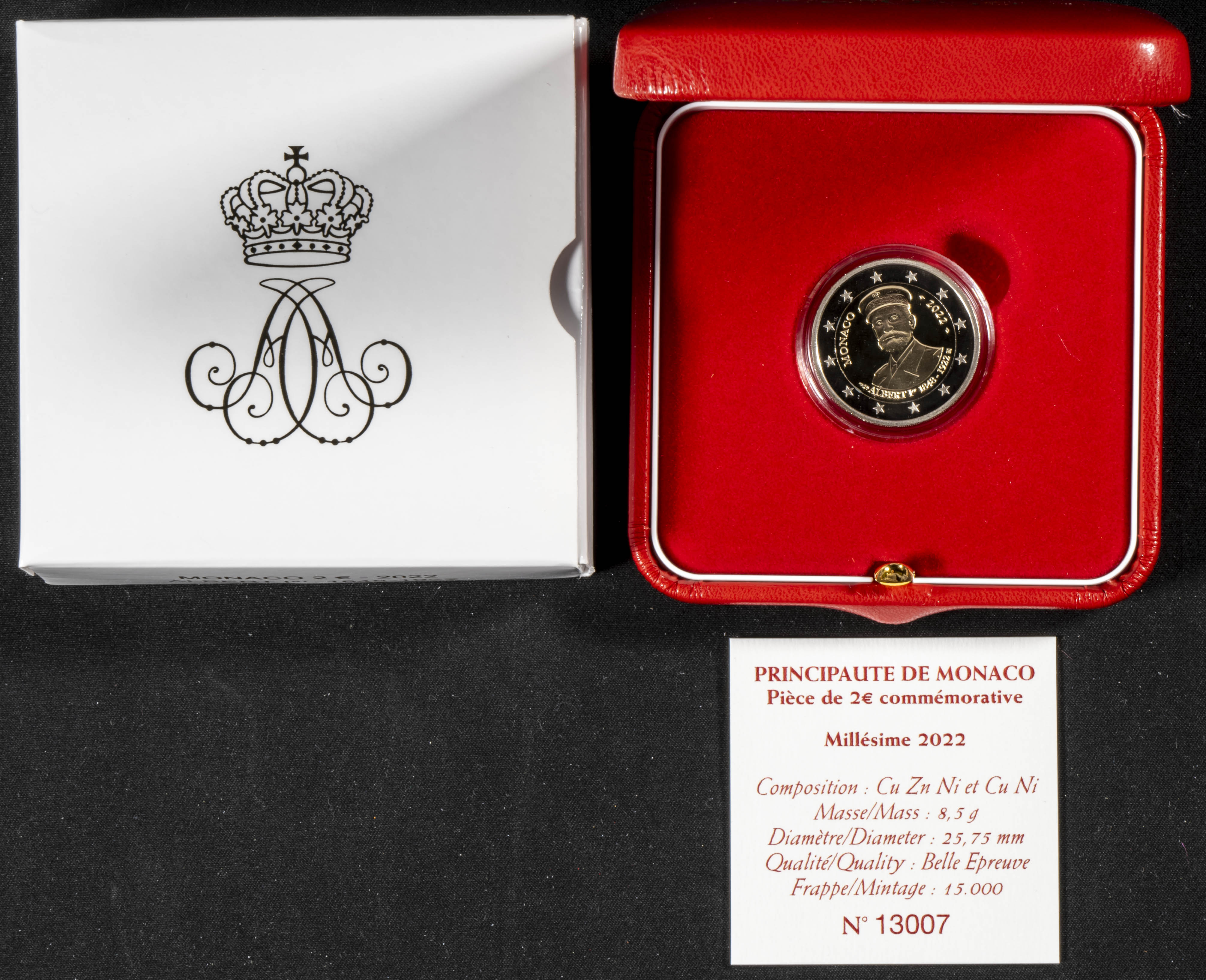 MÓNACO. 2 Euros. (Cu-Ni. 8,50g/26mm). 2022. Alberto I (1848-1922). Calidad: Belle Épreuve (PRUEBA). Tirada de sólo 15.000 unidades. Incluye caja original y certificado de autenticidad.