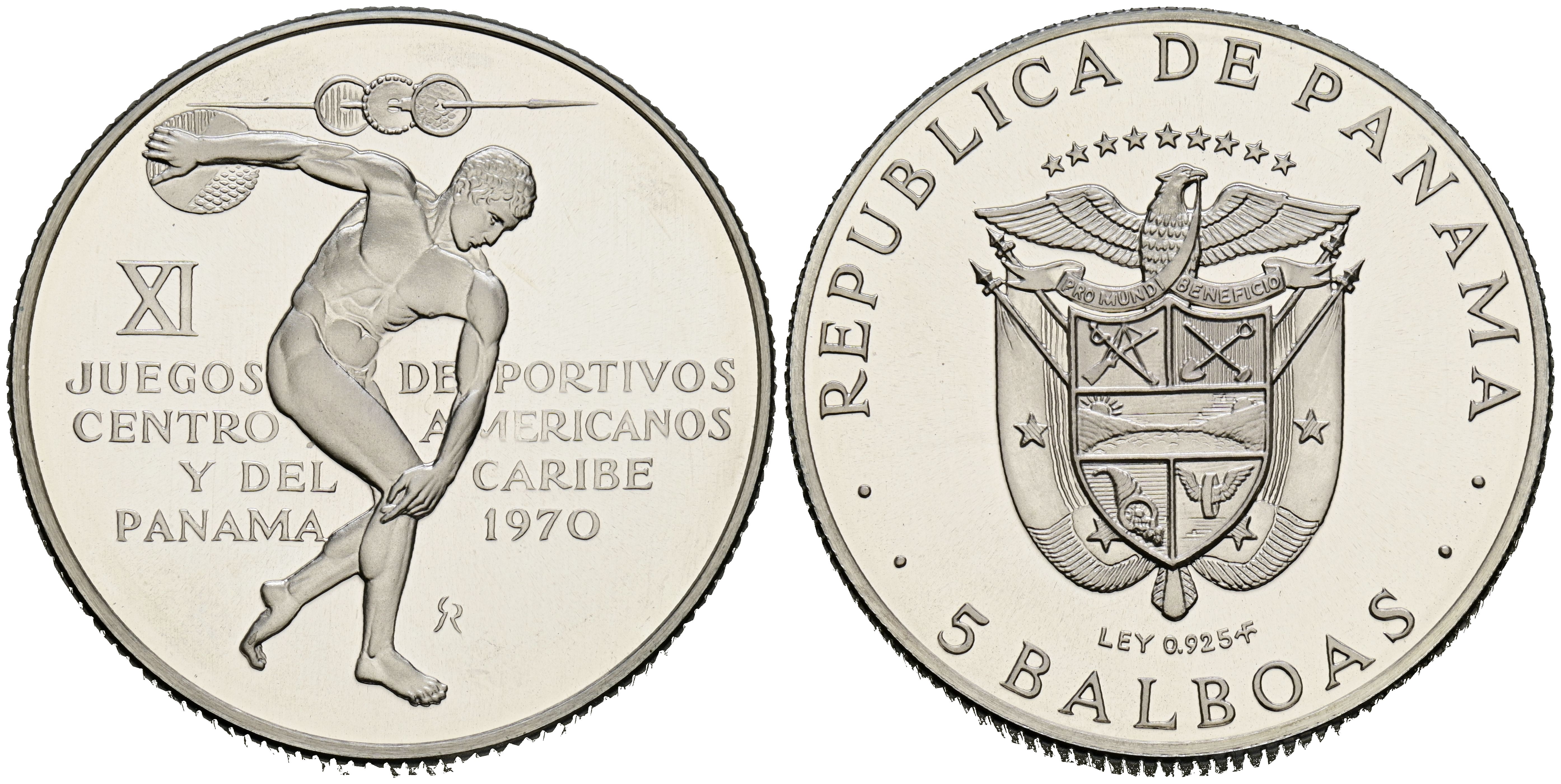 PANAMÁ. 5 Balboas. (Ar. 35,80g/39mm). 1970. Juegos Deportivos Centro Americanos y del Caribe. (Km#28). PROOF.