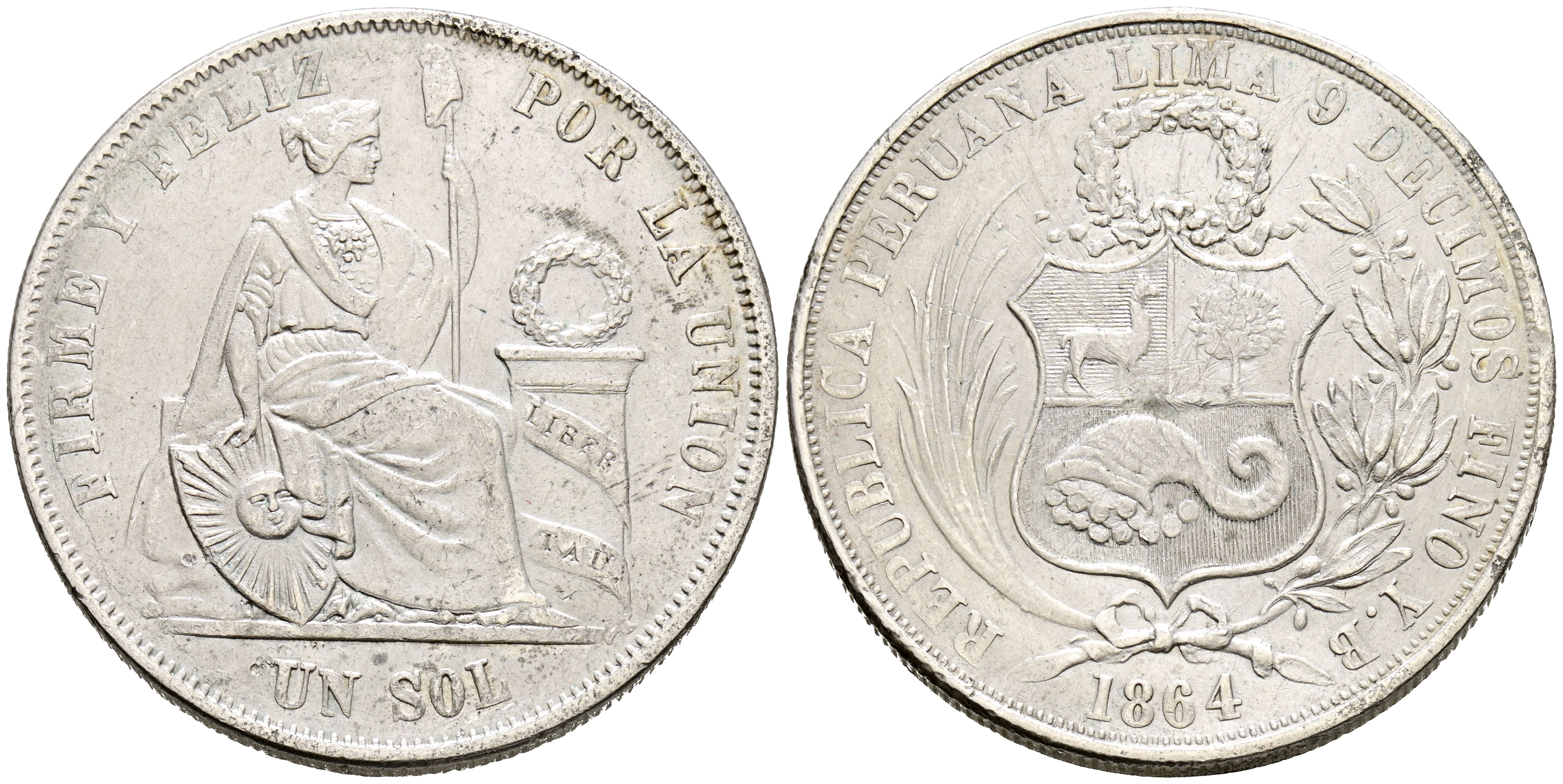 PERÚ. 1 Sol (Ar. 24,91g/37mm). 1864. Lima YB. (Km#196). MBC+/MBC.
