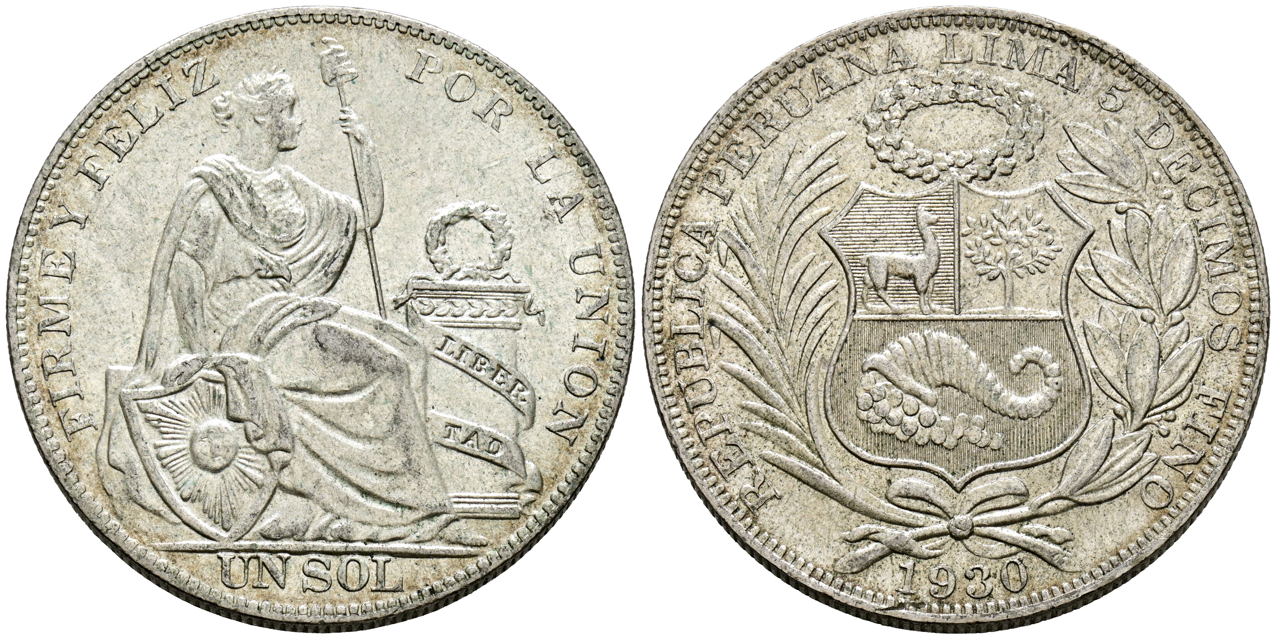 PERÚ. 1 Sol. (Ar. 25,24g/37mm). 1930. Lima. (Km#218.2). MBC+.