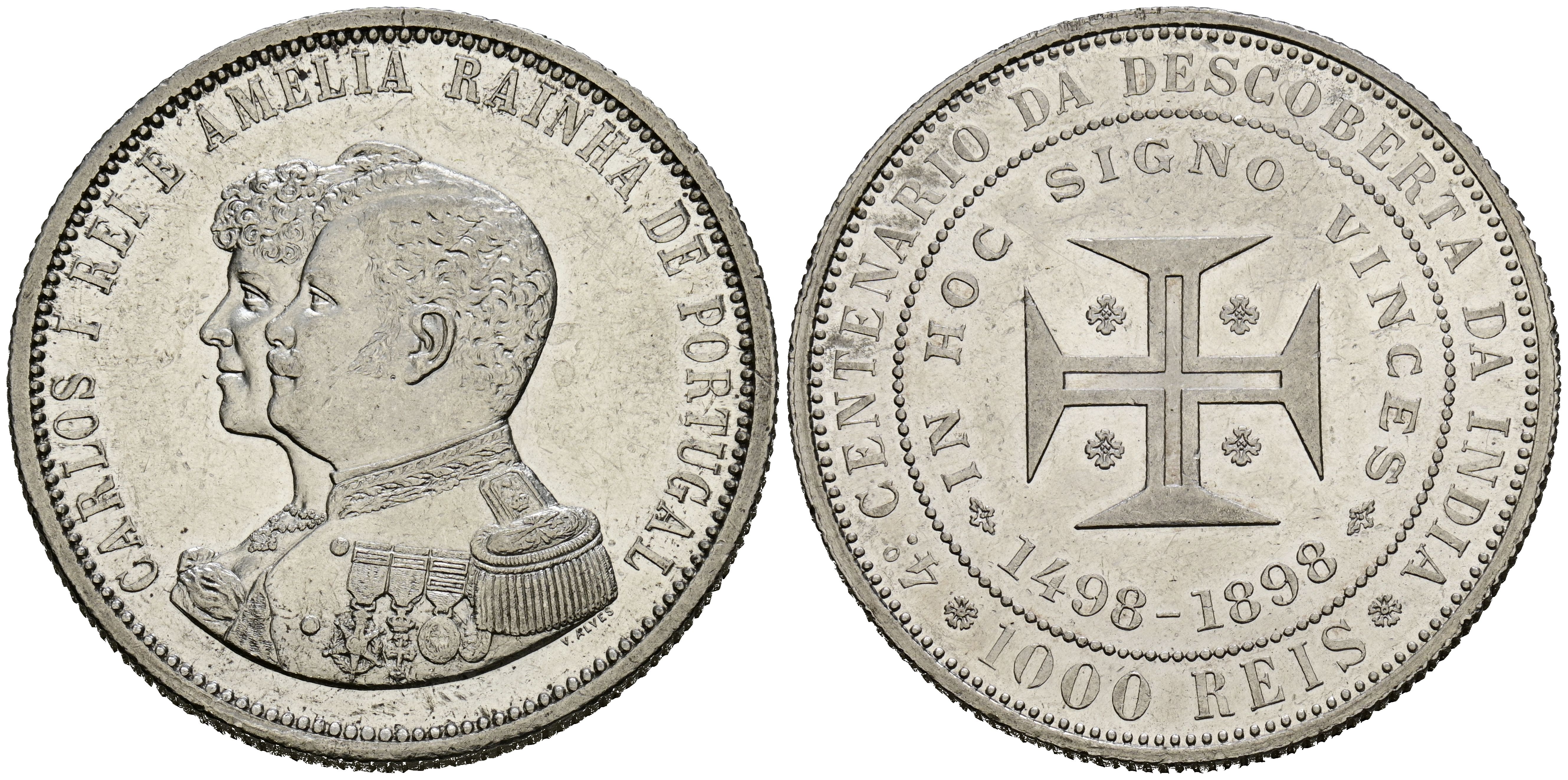 PORTUGAL. 1000 Reis (Ar. 24,91g/37mm). 1898. Carlos I. IV Centenario del Descubrimiento de la India. (Km#539). EBC-. Limpiada. Escasa.