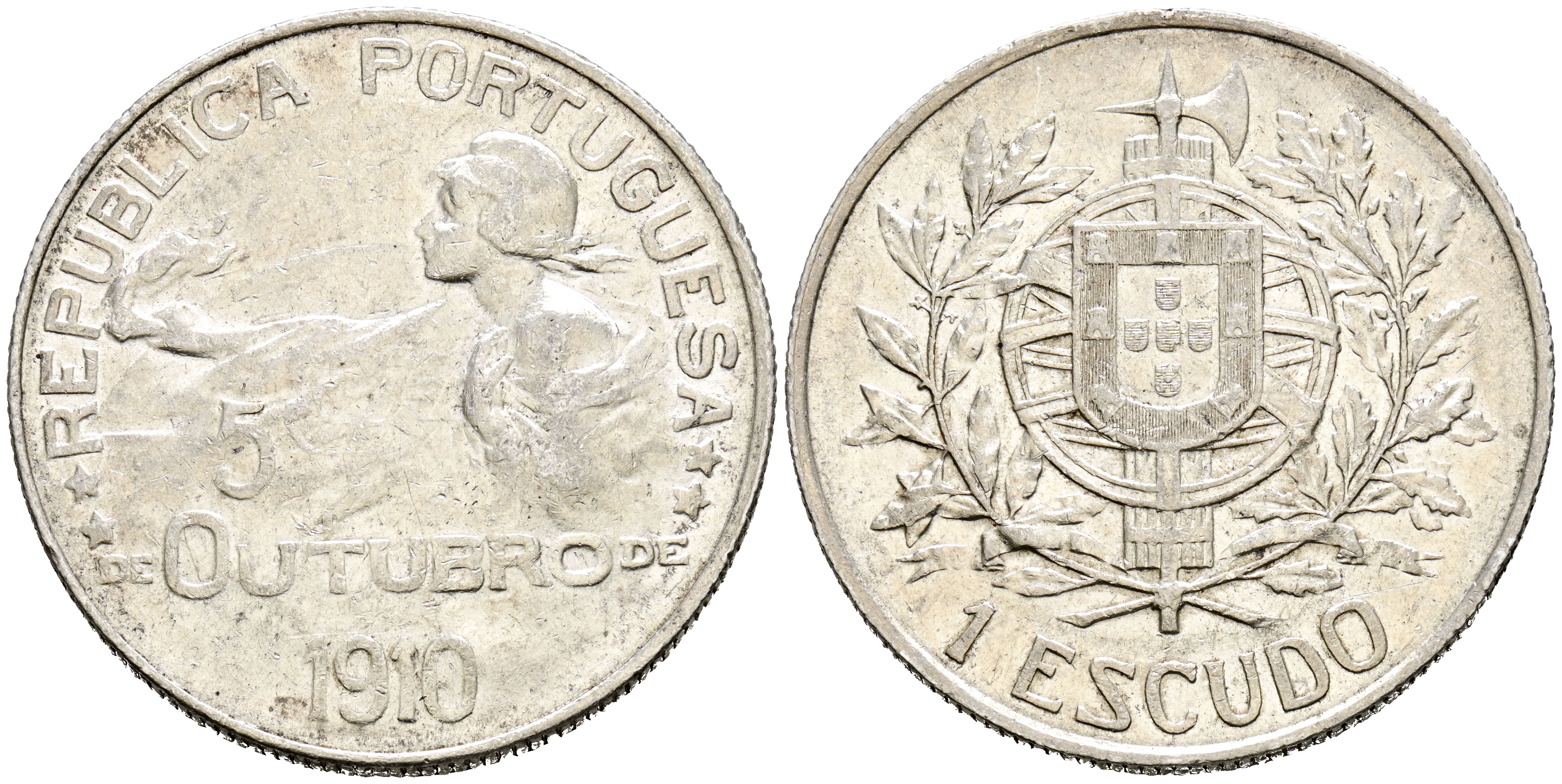 PORTUGAL. 1 Escudo. (Ar. 24,97g/37mm). S/D (c.a.1914). Proclamación de la I República en octubre de 1910. (Km#560). MBC.