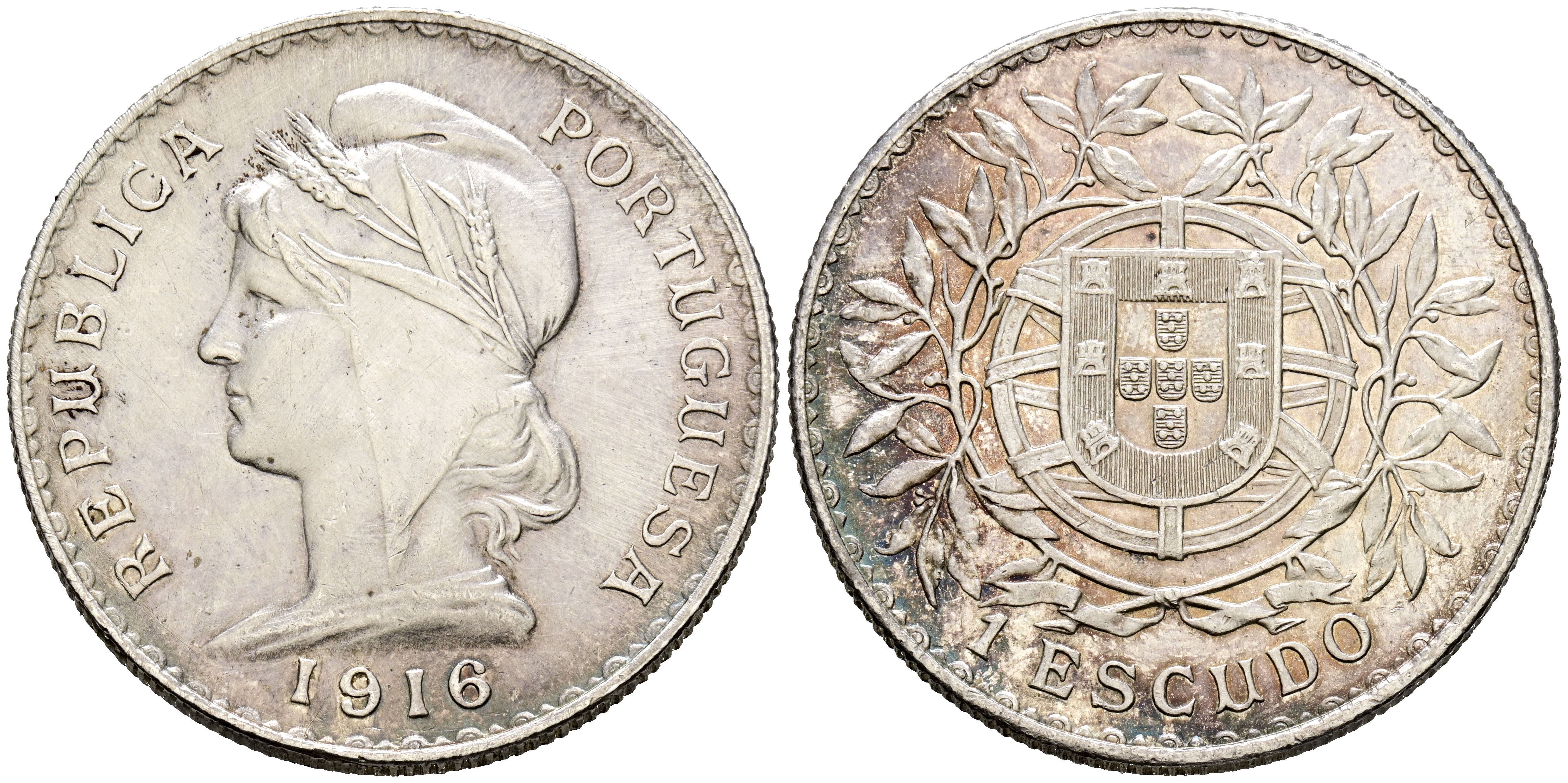 PORTUGAL. 1 Escudo. (Ar. 25,08g/37mm). 1916. (Gomes 23.02). MBC+. Rayitas de limpieza.