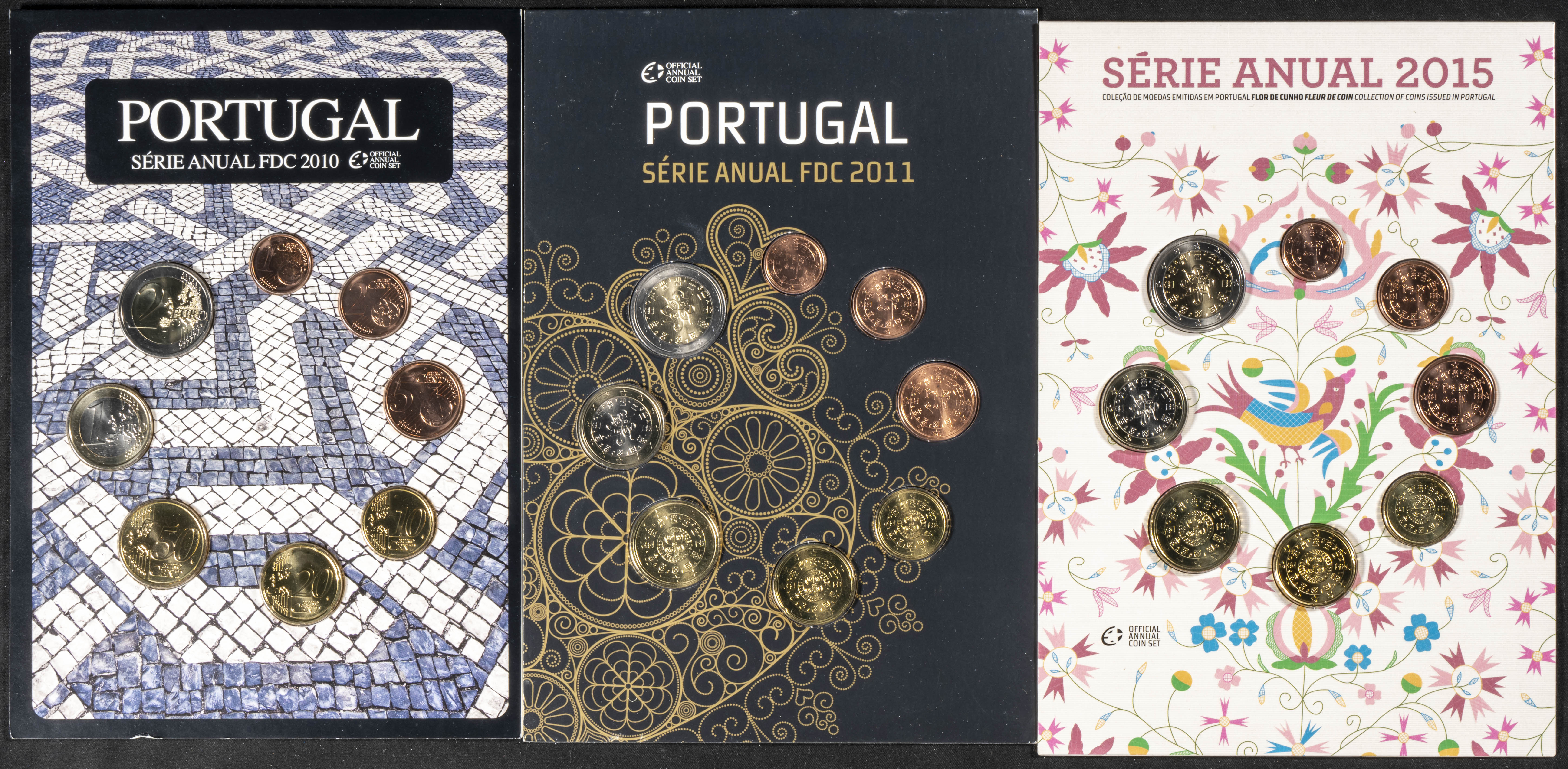 PORTUGAL. Conjunto de 3 series completas de Euros de los años 2010, 2011 y 2015. FDC.