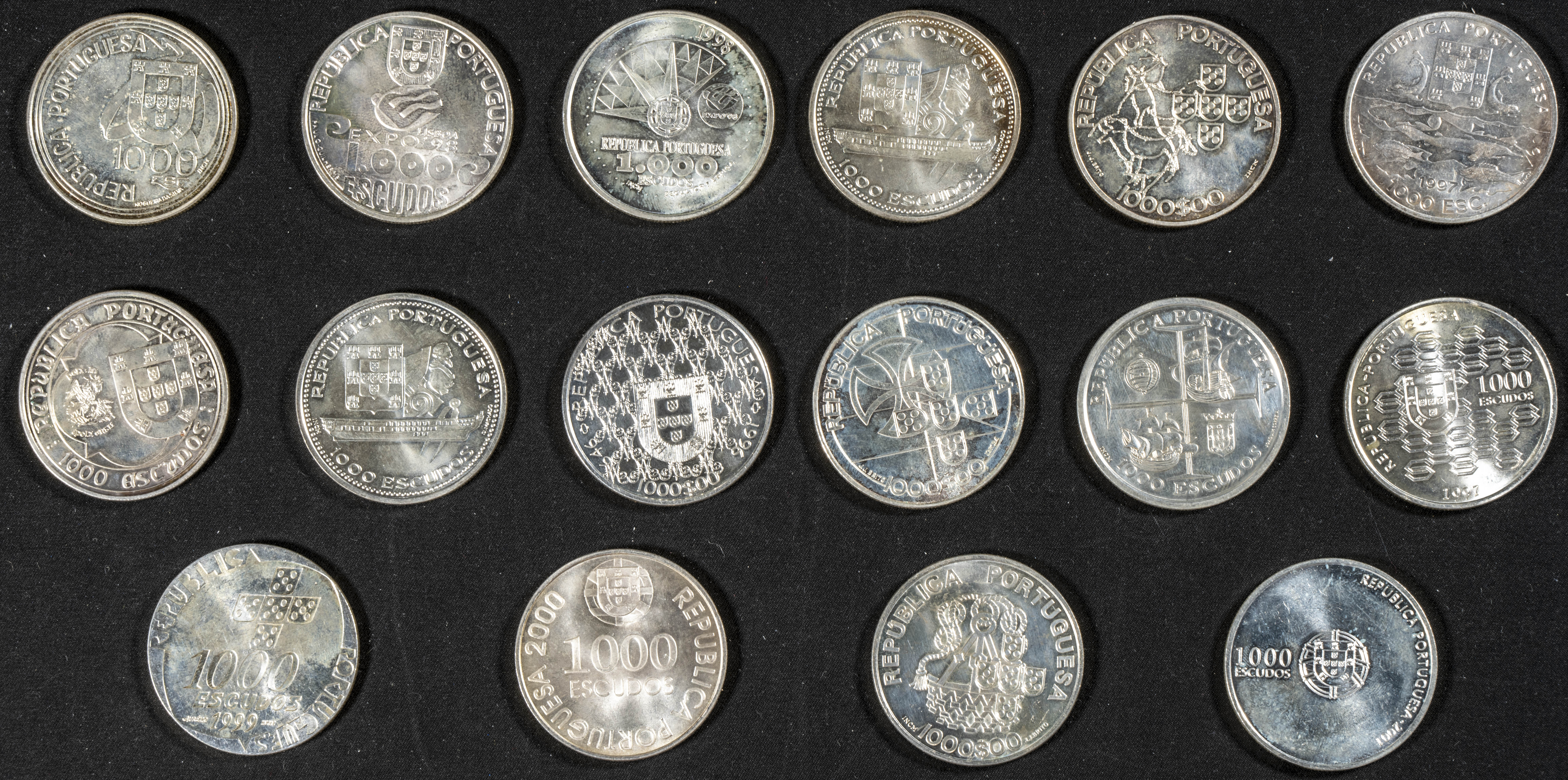 PORTUGAL. Conjunto de 16 monedas de plata de 1000 Escudos todas con temática diferente. Ninguna pieza repetida. Alto nivel de conservación general. A EXAMINAR.