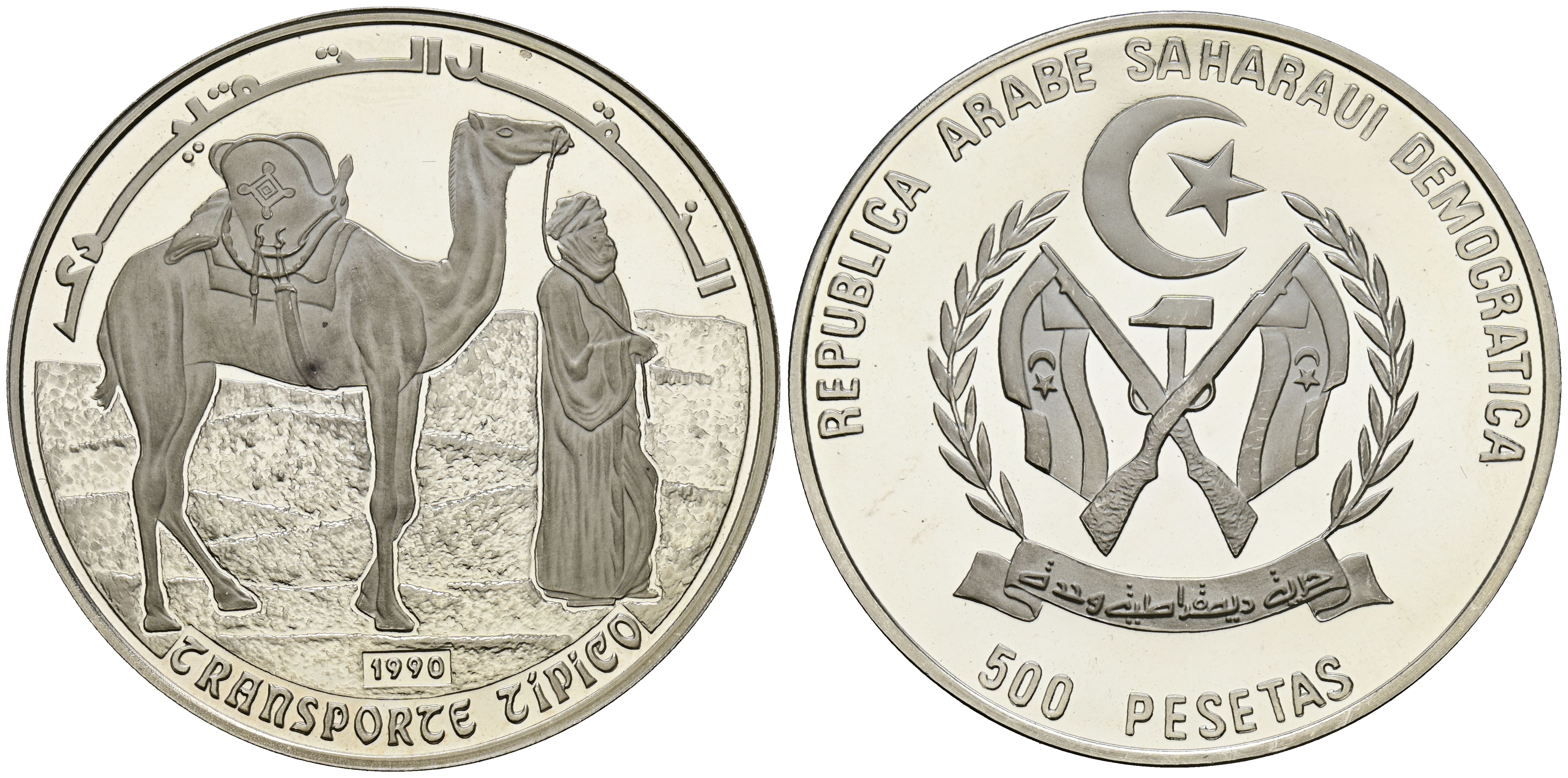 REPUBLICA ARABE SAHARAUI DEMOCARTICA. 500 Pesetas. (Ar. 16,01g/38mm). 1990. (Km#2). PROOF.