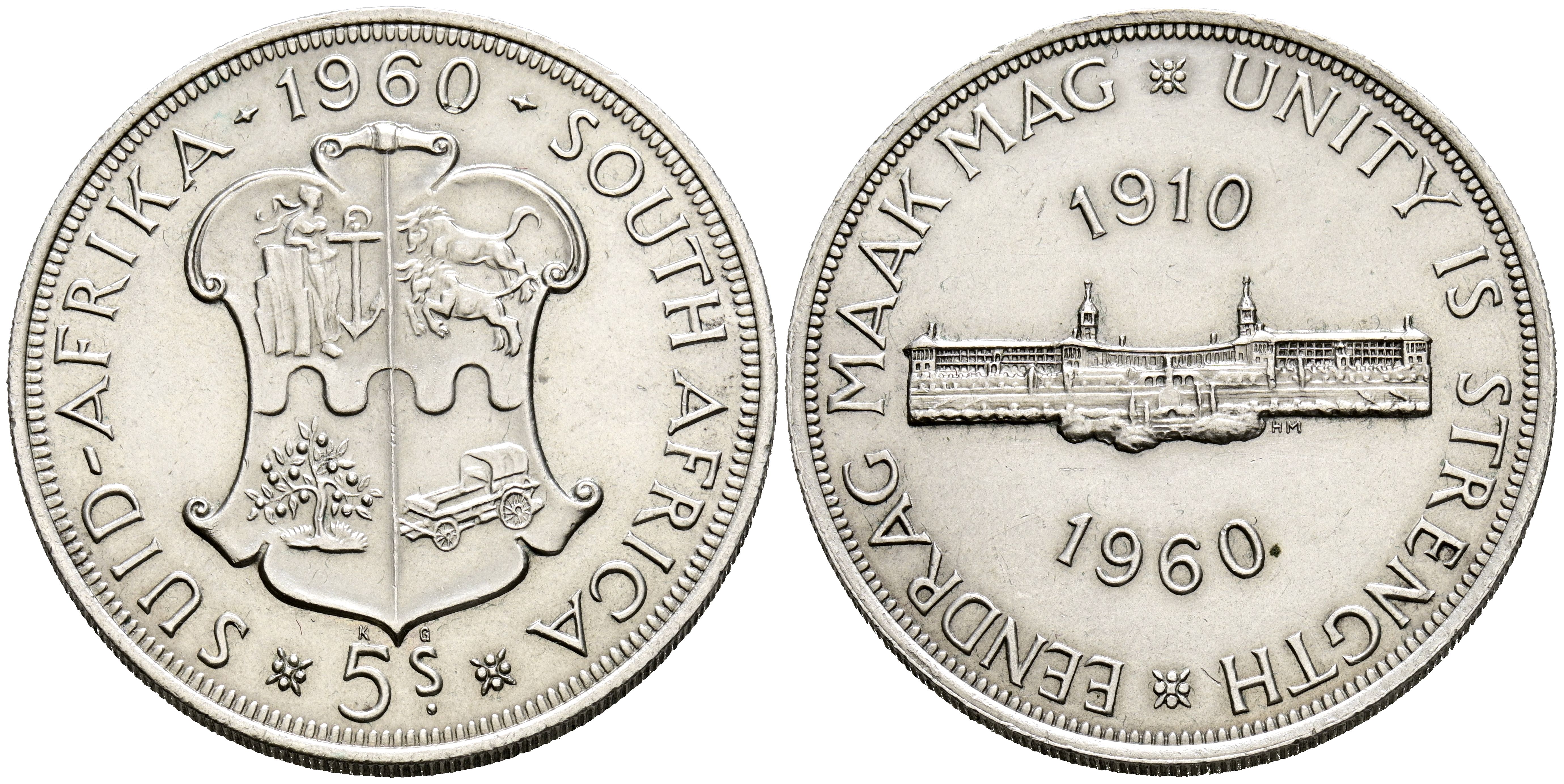 SUDÁFRICA. 5 Chelines (Ar. 28,28g/39mm). 1960. 50 Aniversario Unión Sudafricana. (Km#55). EBC.