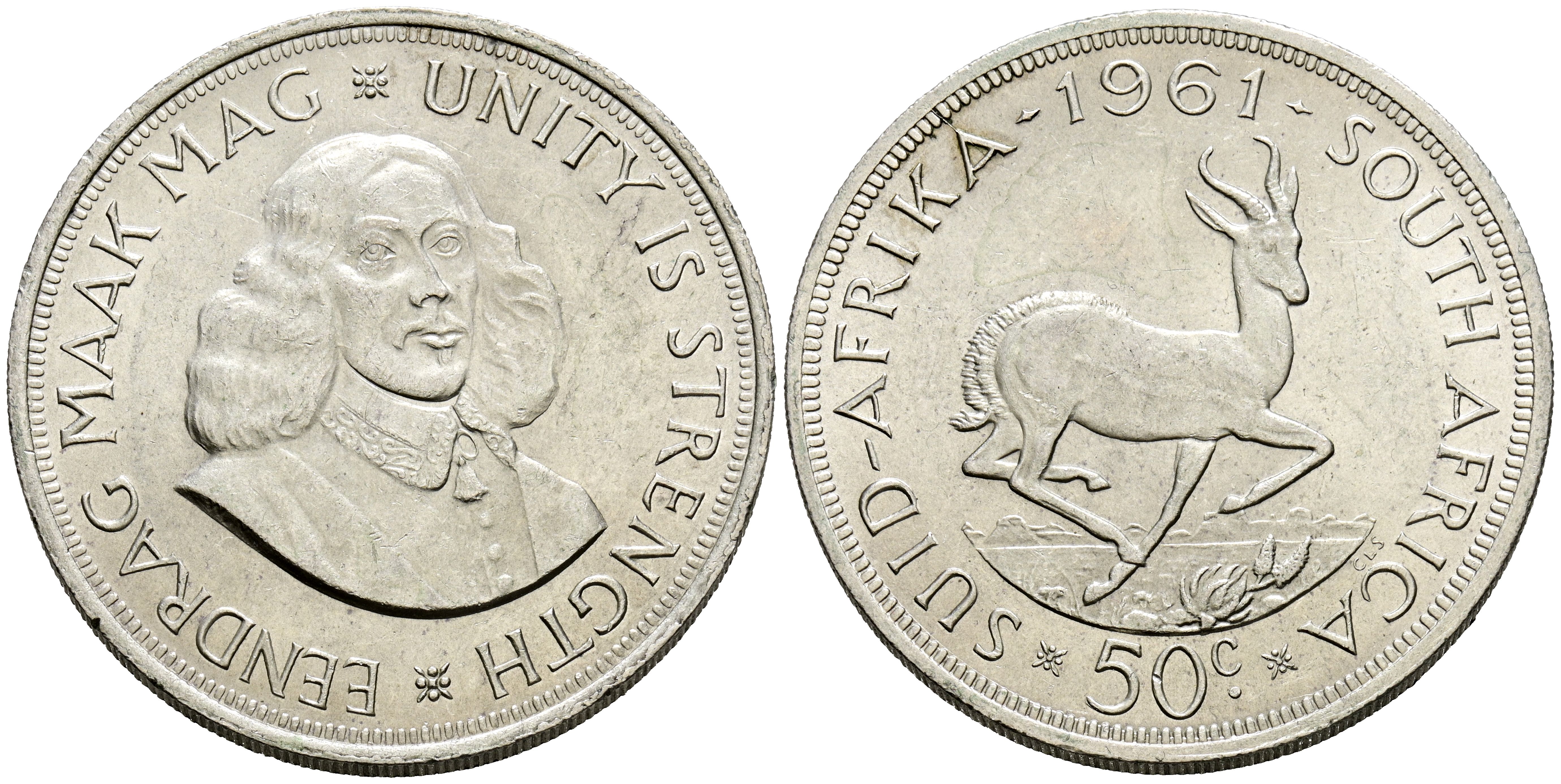 SUDÁFRICA. 50 Cents (Ar. 28,25g/39mm). 1961. (Km#62). EBC+