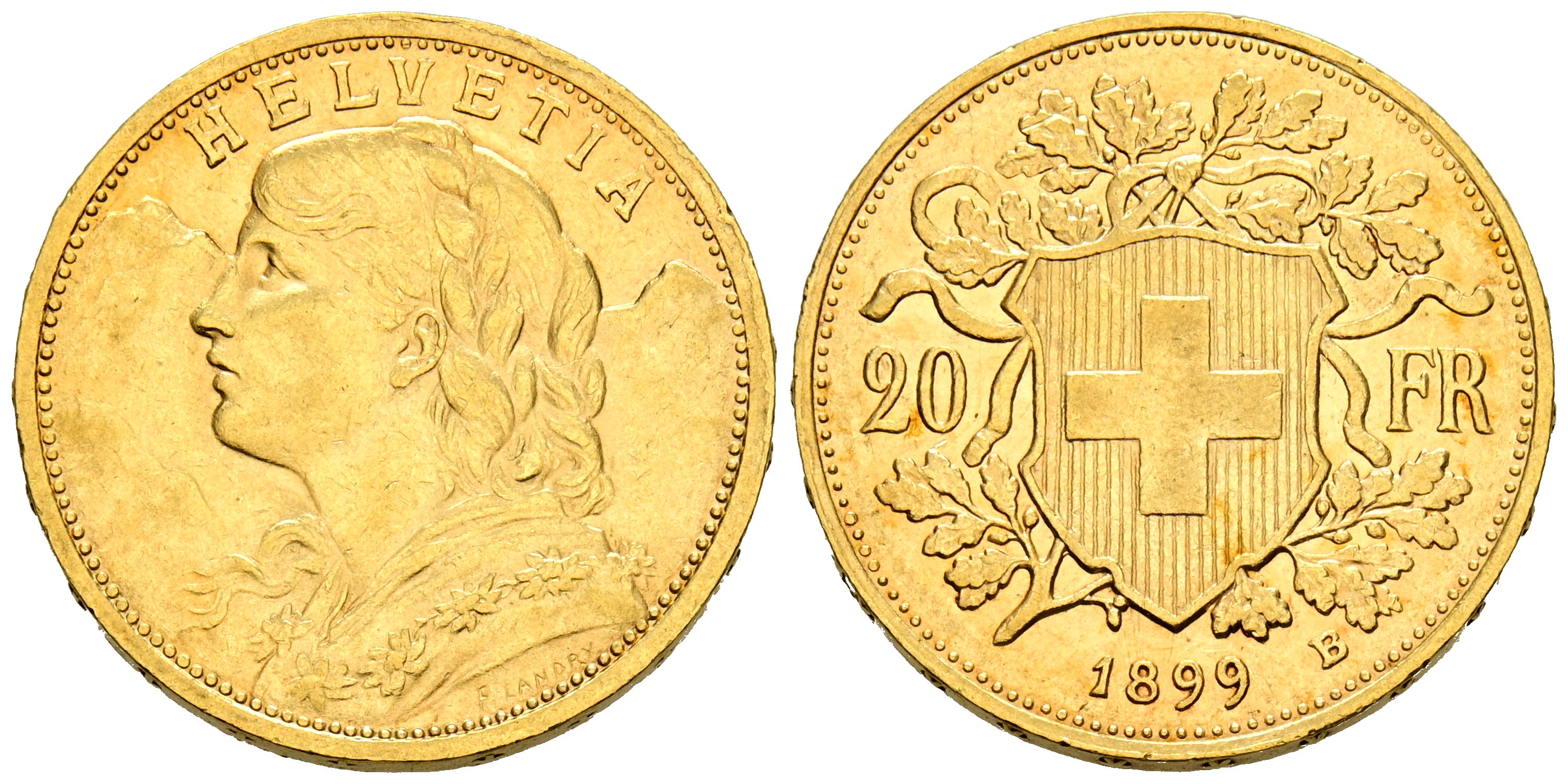 SUIZA. 20 Francos. (Au. 6,43g/21mm). 1899. Berna. (Km#35.1). EBC-.