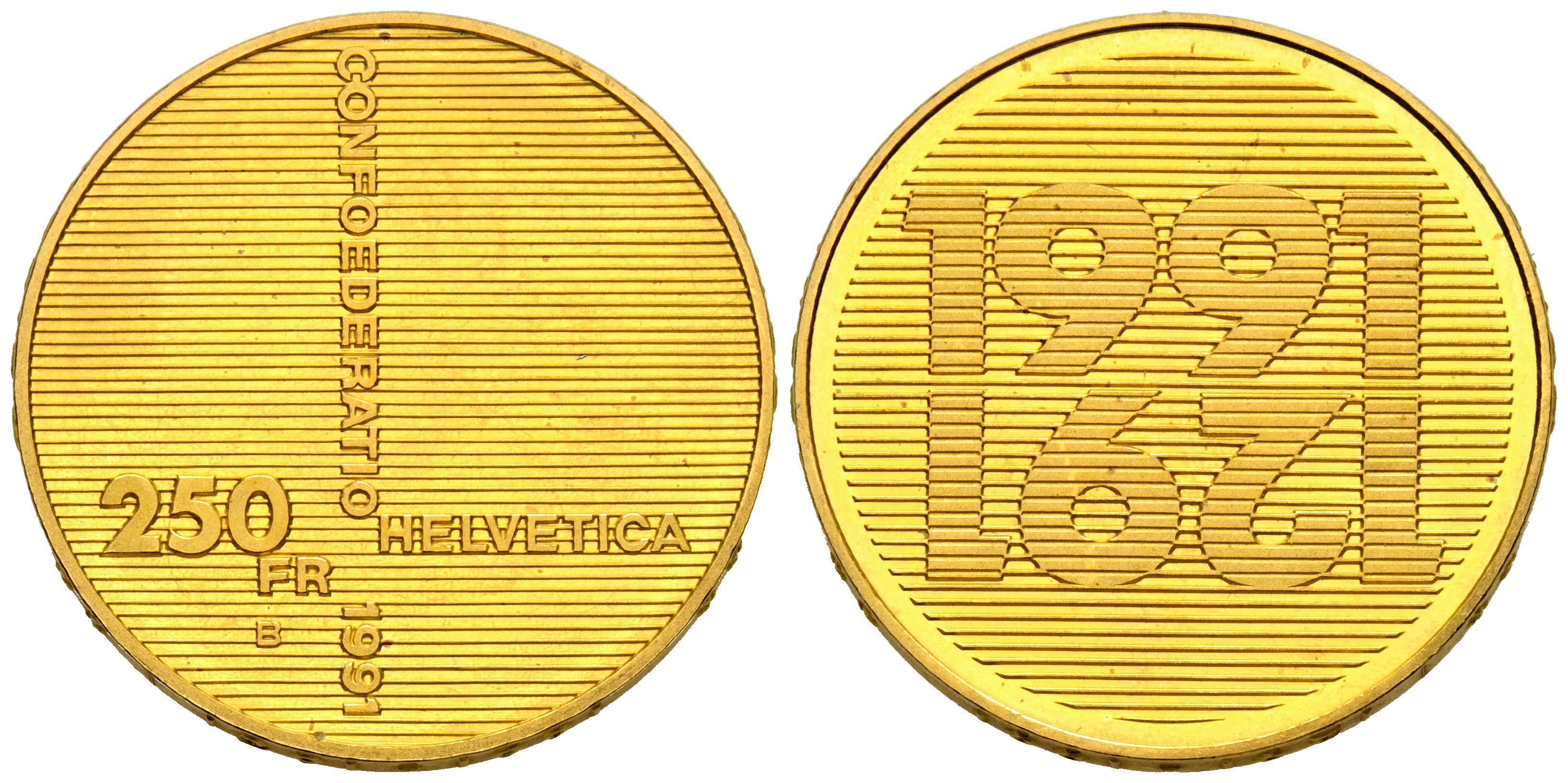 SUIZA. 250 Francos (Au. 8,00g/23mm). 1991. 700 Aniversario de la Confederación Helvética (1291-971). (Km#71.2). EBC.