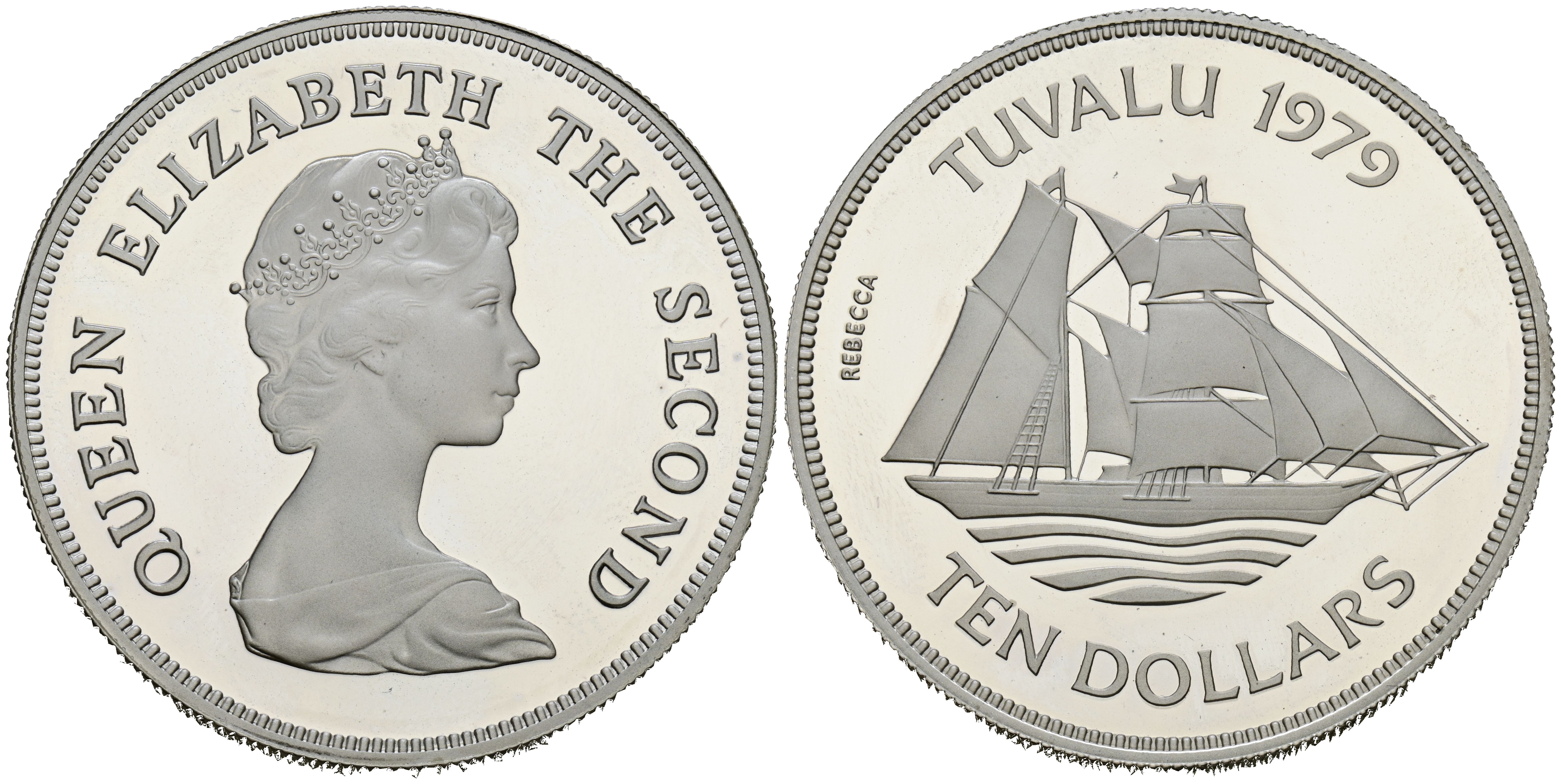 TUVALU. 10 Dollars. (Ar. 35,30g/42mm). 1979. Isabel II. (Km#79). PROOF.