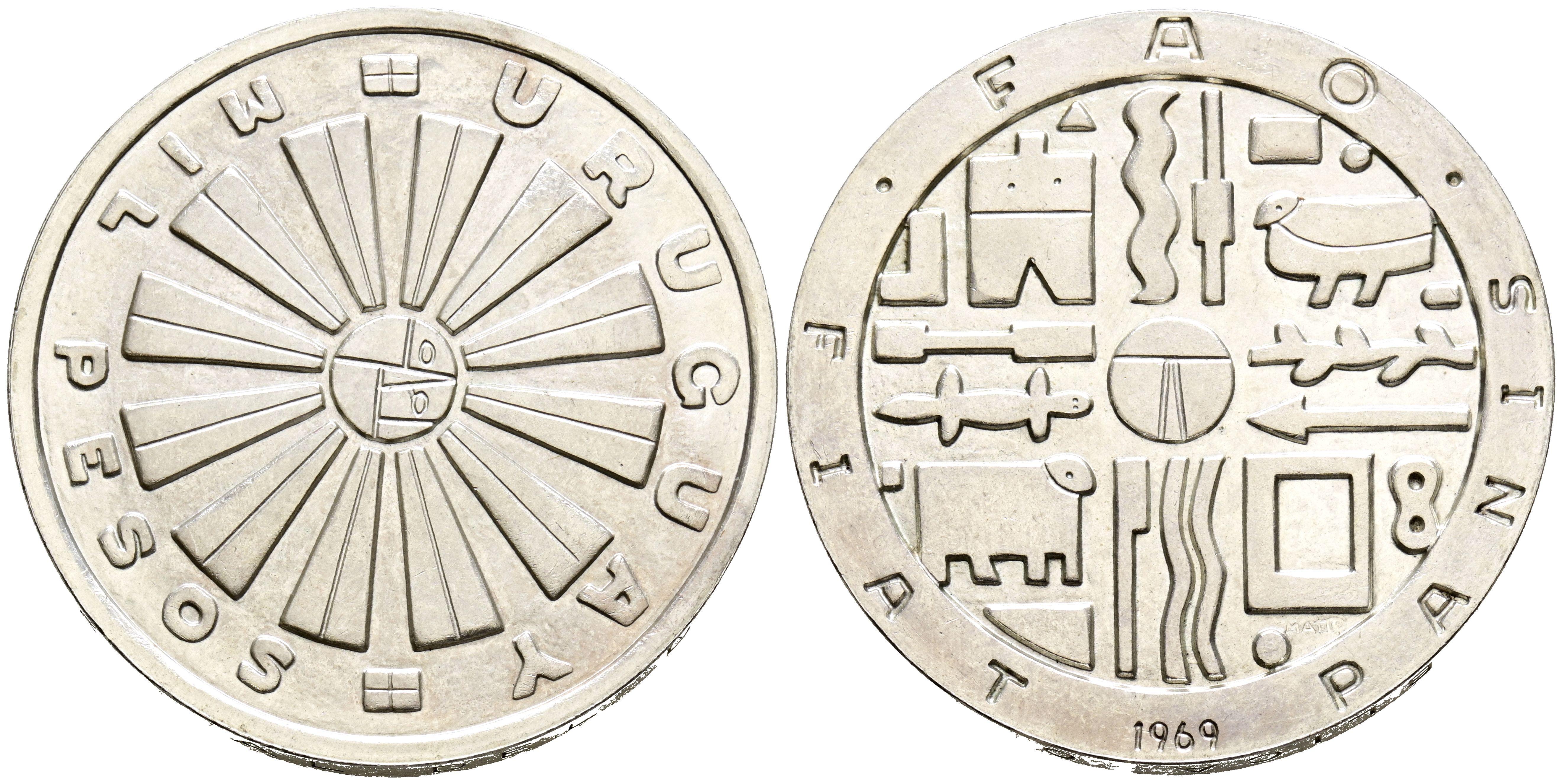 URUGUAY. 1000 pesos. (Ar. 25,09g/37mm). 1969. FAO. (Km#55). SC-.